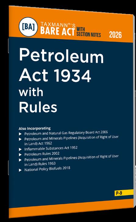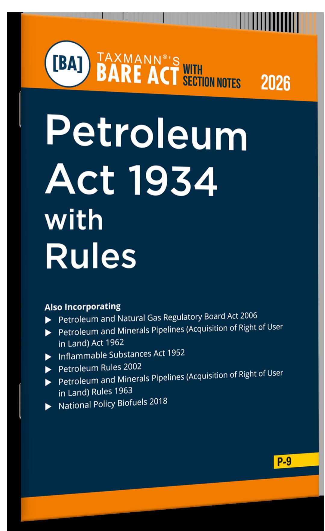 Petroleum Act 1934 with Rules [Bare Act with Section Notes] by Taxmann is a comprehensive and updated reference on India’s primary legislation regulating the import, transport, storage, refining, testing, and handling of petroleum and allied substances. This Edition consolidates the Act with relevant Rules and Allied Acts, including the Petroleum Rules 2002, the Inflammable Substances Act 1952, and the Petroleum & Minerals Pipelines (Acquisition of Right of User in Land) Act 1962, ensuring complete alignment with the law as amended up to date.
