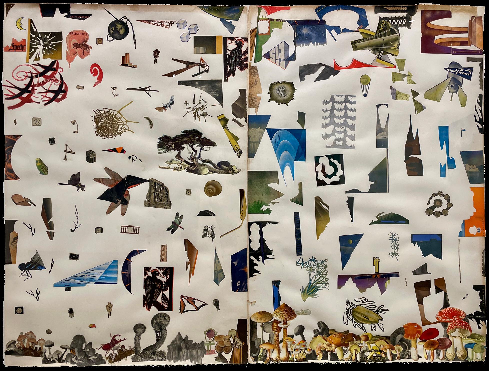Known for his intricate compositions made from hand-cut fragments of paper, Letscher creates layered images that balance narrative suggestion with expansive, formal exploration.