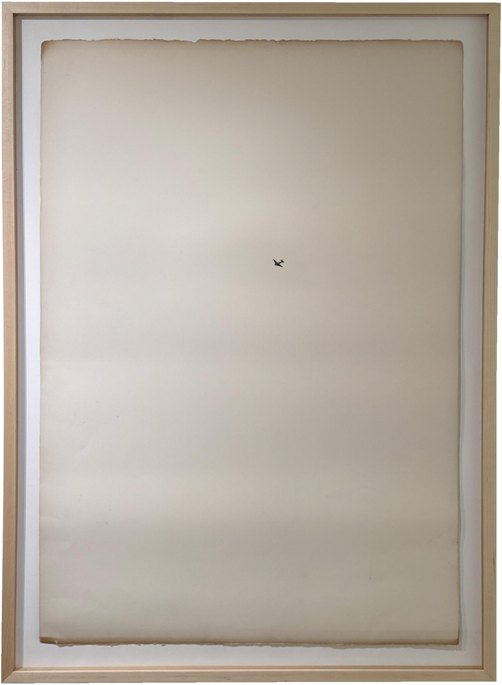 The exhibition’s title comes from a large-scale work made from a salvaged, unstretched canvas that Letscher encountered and immediately envisioned as a vast expanse of sky. A myriad of planes of varying size are suspended in the center of the canvas, bordered by a vibrant array of flora and fruit. For Letscher, airplanes offer a familiar visual vocabulary rooted in childhood memories of watching planes cross the sky, serving as a means to explore light, perspective, and spatial tension.