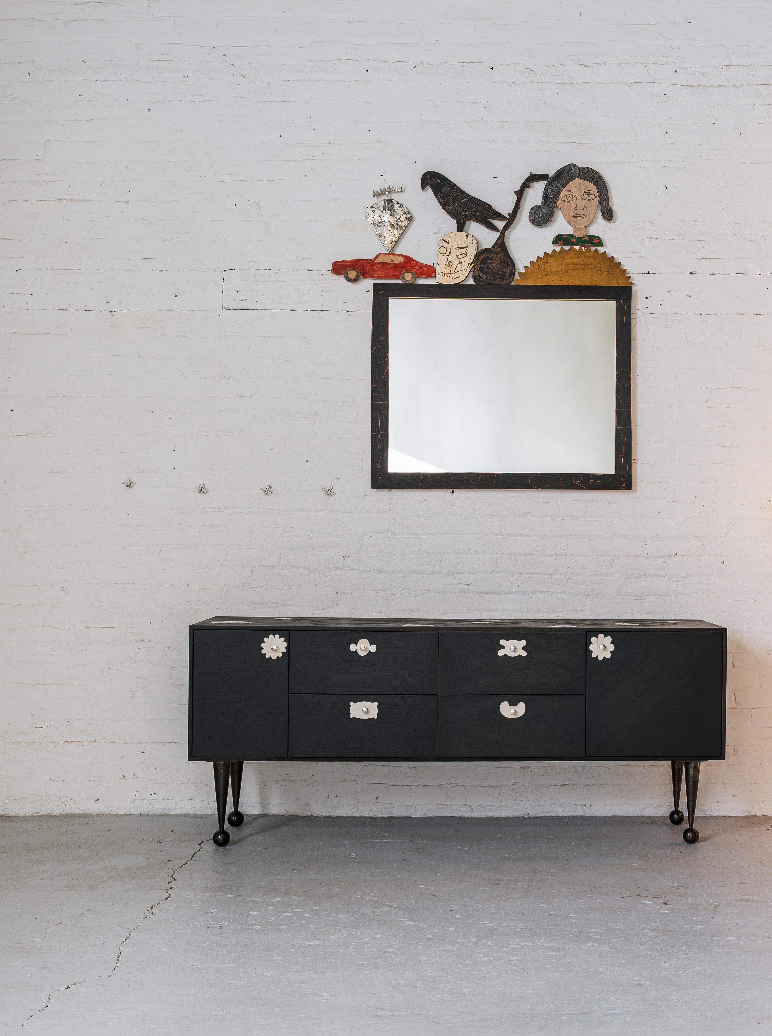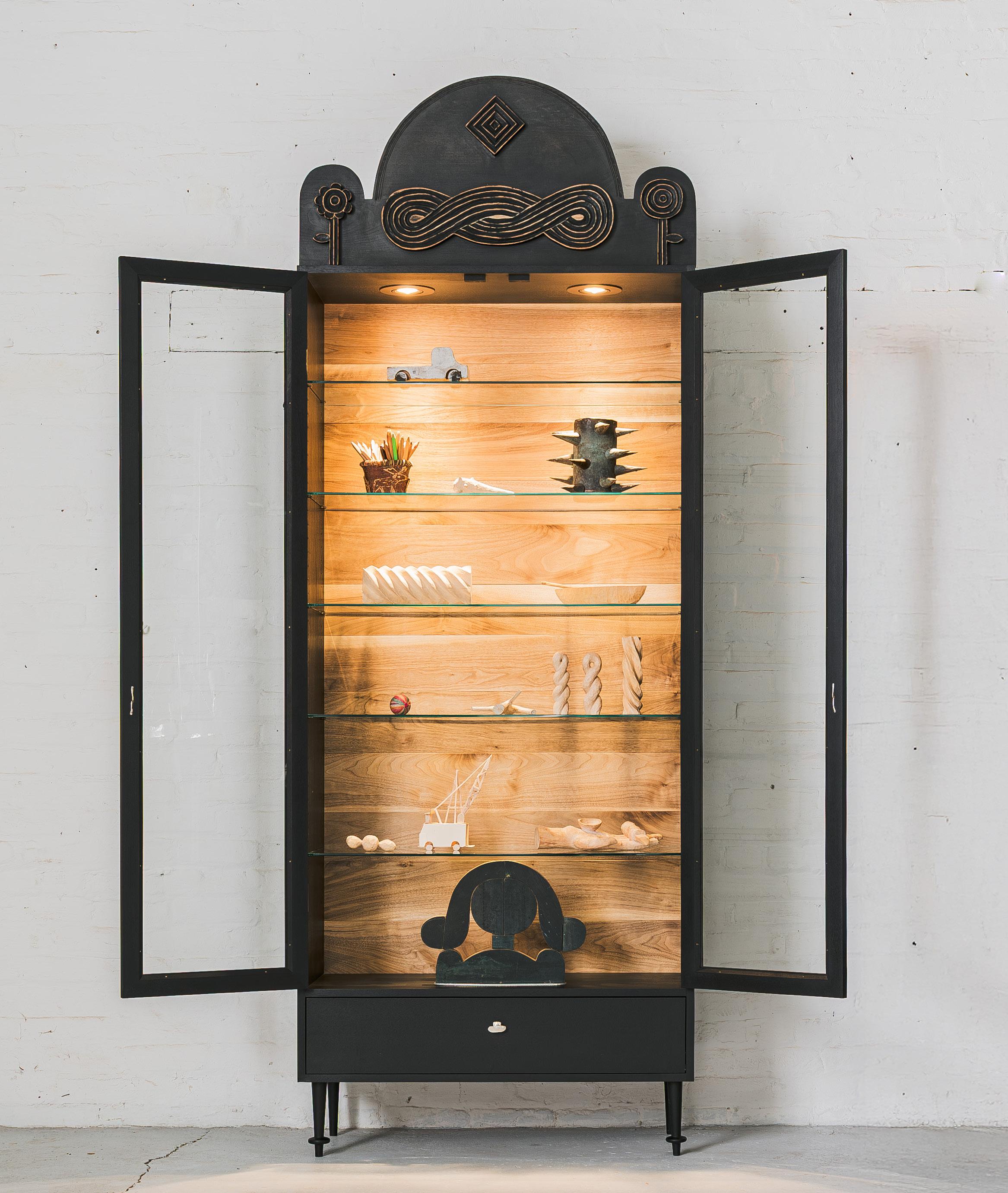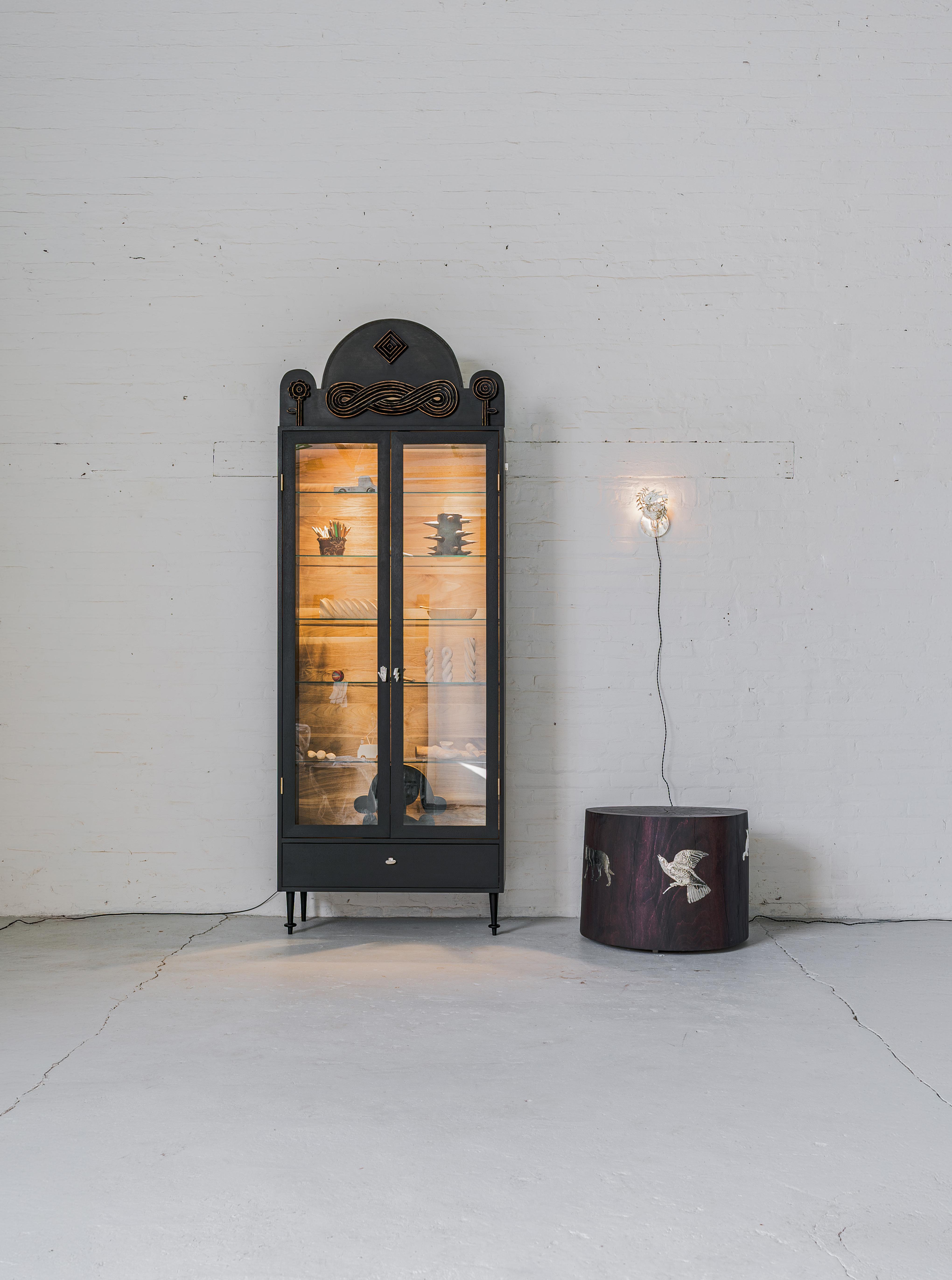 cohesion across furniture, objects, and sculpture. Nature-derived references mingle with playful, almost folkloric elements, resulting in a visual language that feels both grounded and animated. Initially emerging through decorative interventions on functional forms, Meyer’s artistic practice has evolved into freestanding sculptural objects that comfortably occupy the space between design and fine art. The distinction between these categories is intentionally blurred, reflecting Meyer’s long-held interest in studio art and his belief that the two disciplines enrich one another. DeLisio is responsible for nurturing this co-creation at every evolution, teasing out Meyer’s natural ability to design and showcasing his work as the creative director of Sawkille.