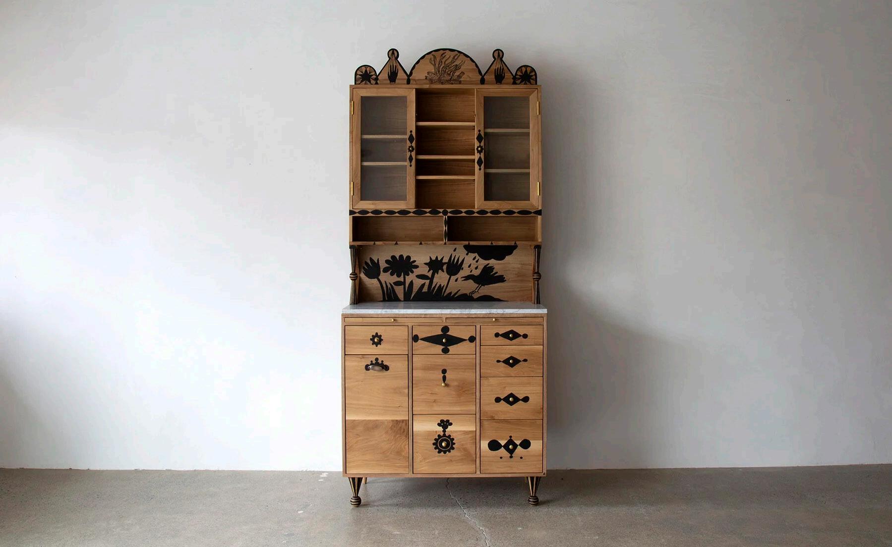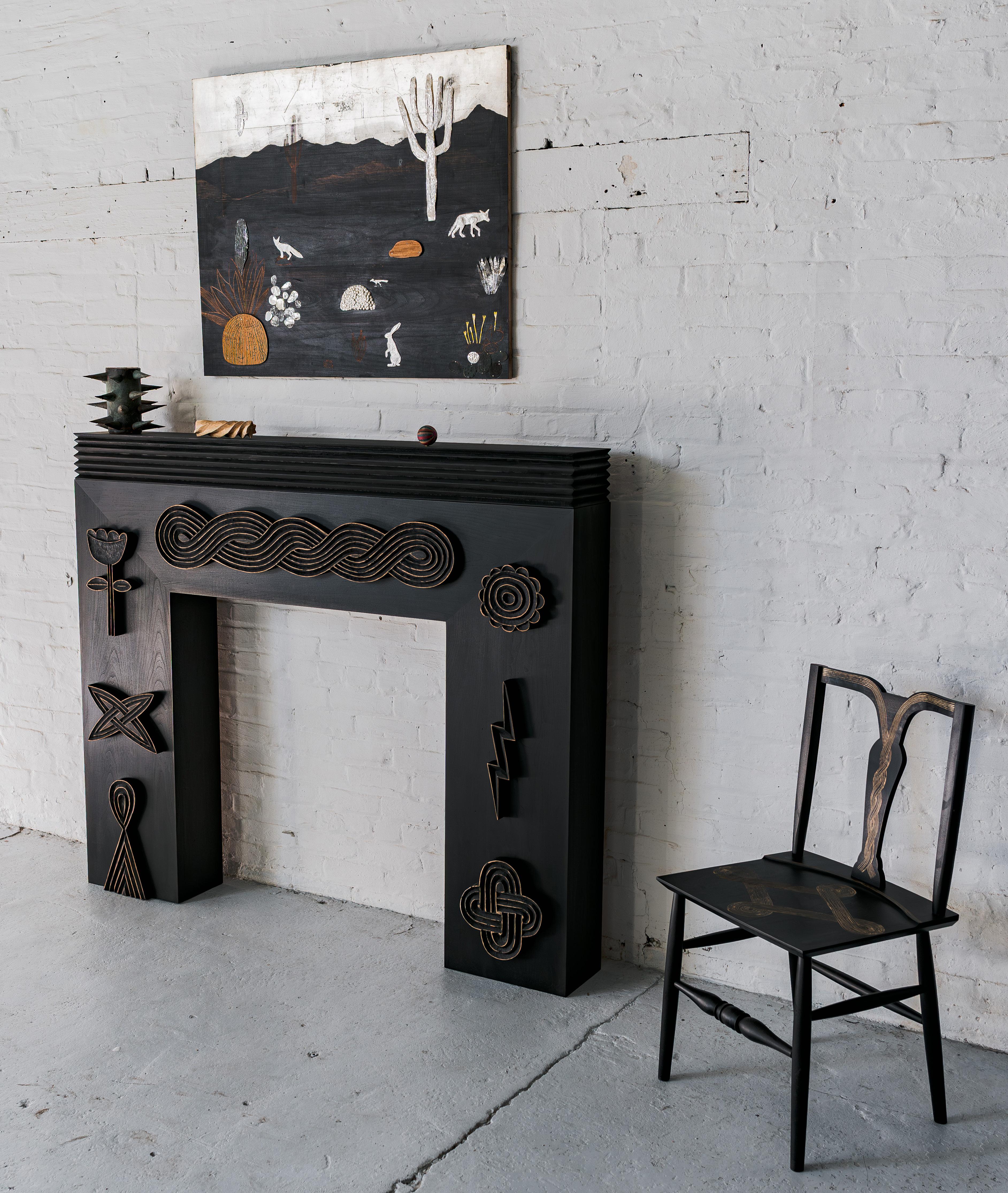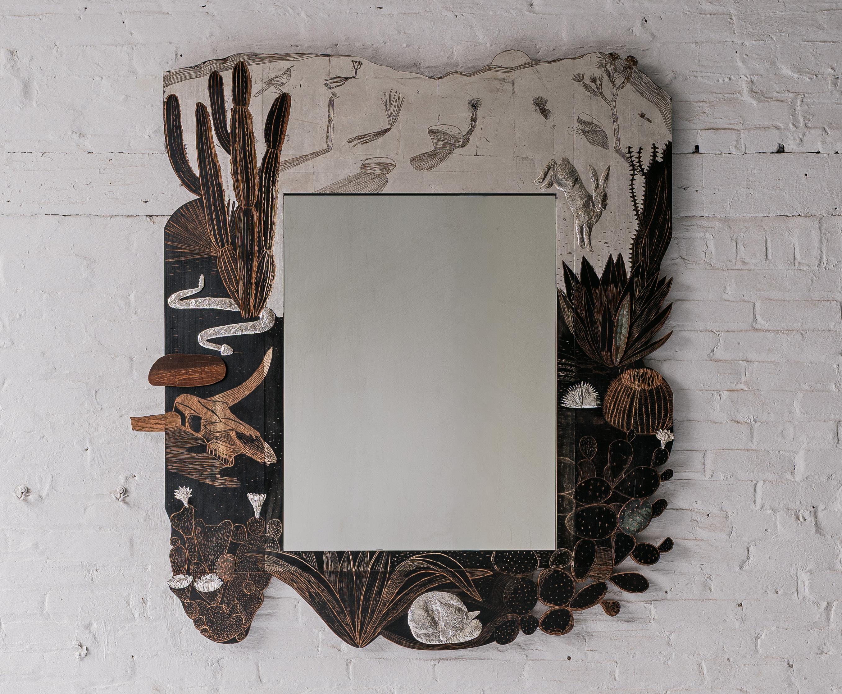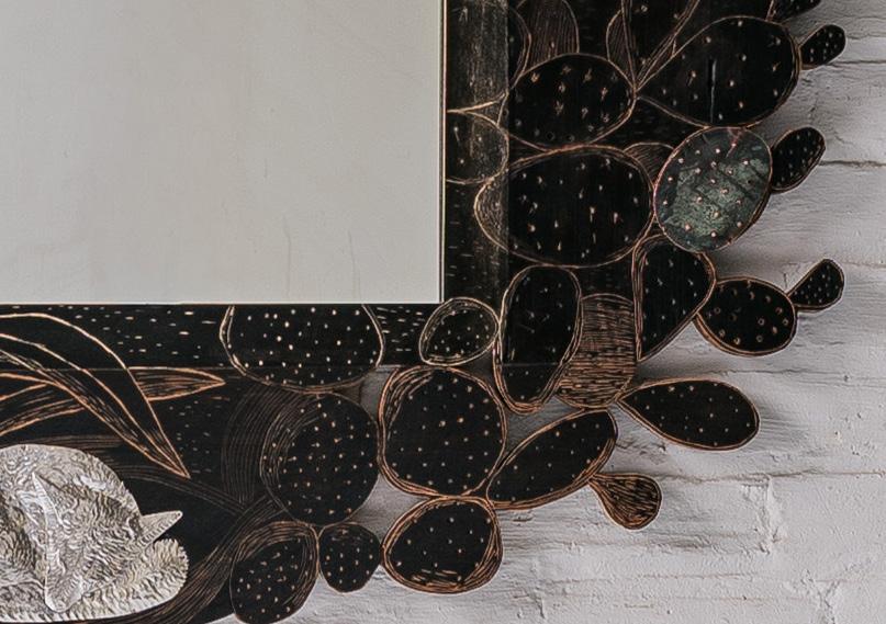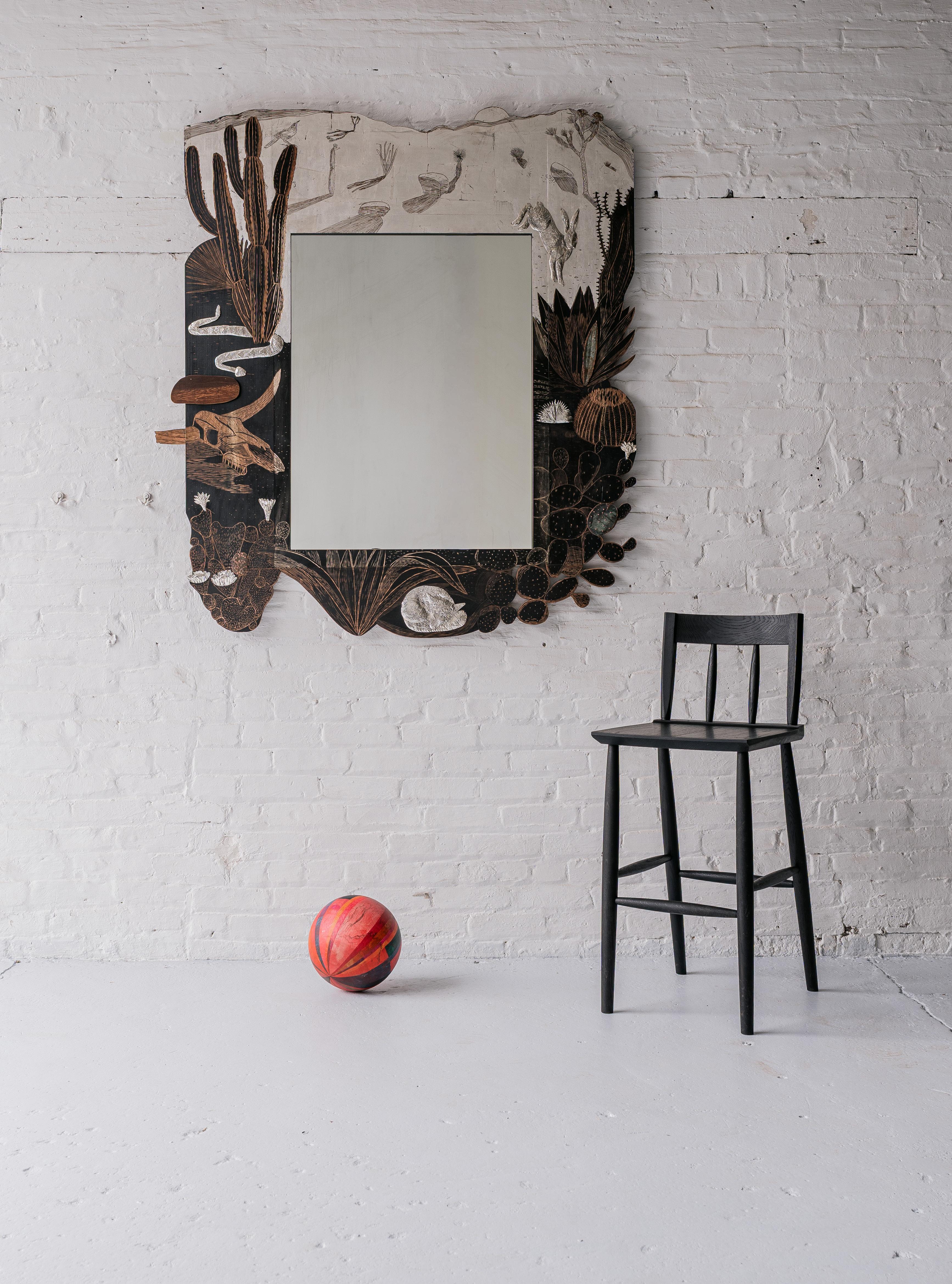 Founded and owned by Jonah Meyer and Tara DeLisio, Sawkille Co. is known for its meticulous craftsmanship and deeply rooted commitment to sustainable production. All works are handmade in Sawkille’s Kingston, New York workshop using locally sourced wood from the surrounding Hudson Valley forests. The visible hand of the maker remains central to each piece, underscoring a belief that objects gain character through time, use, and care. Is This Real? highlights recent developments in Meyer’s practice, shaped in part by time spent in the American West. Desert landscapes have introduced new iconography and spatial ideas, visible in deeply carved motifs, refined animal forms rendered in silver, and an expanded body of wallmounted and sculptural works. While recurring patterns appear across media, their translation –from drawing to carving to metal – produces subtle shifts that emphasize process as a generative force.