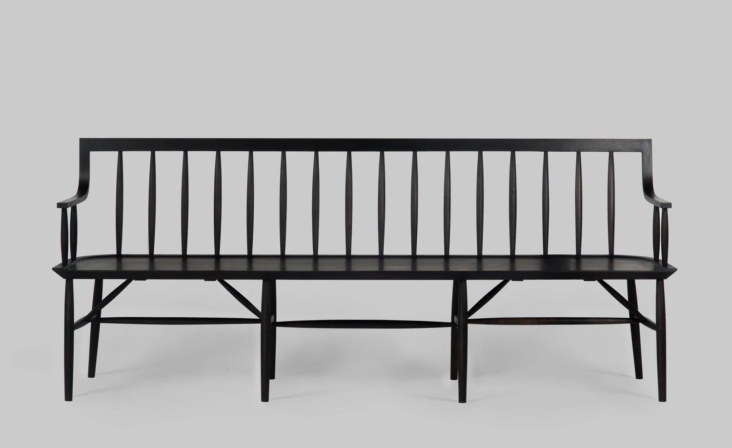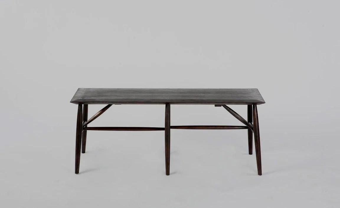 Ebonized American black walnut with hammered silver poles DIMENSIONS: 36W x 16D x H inches