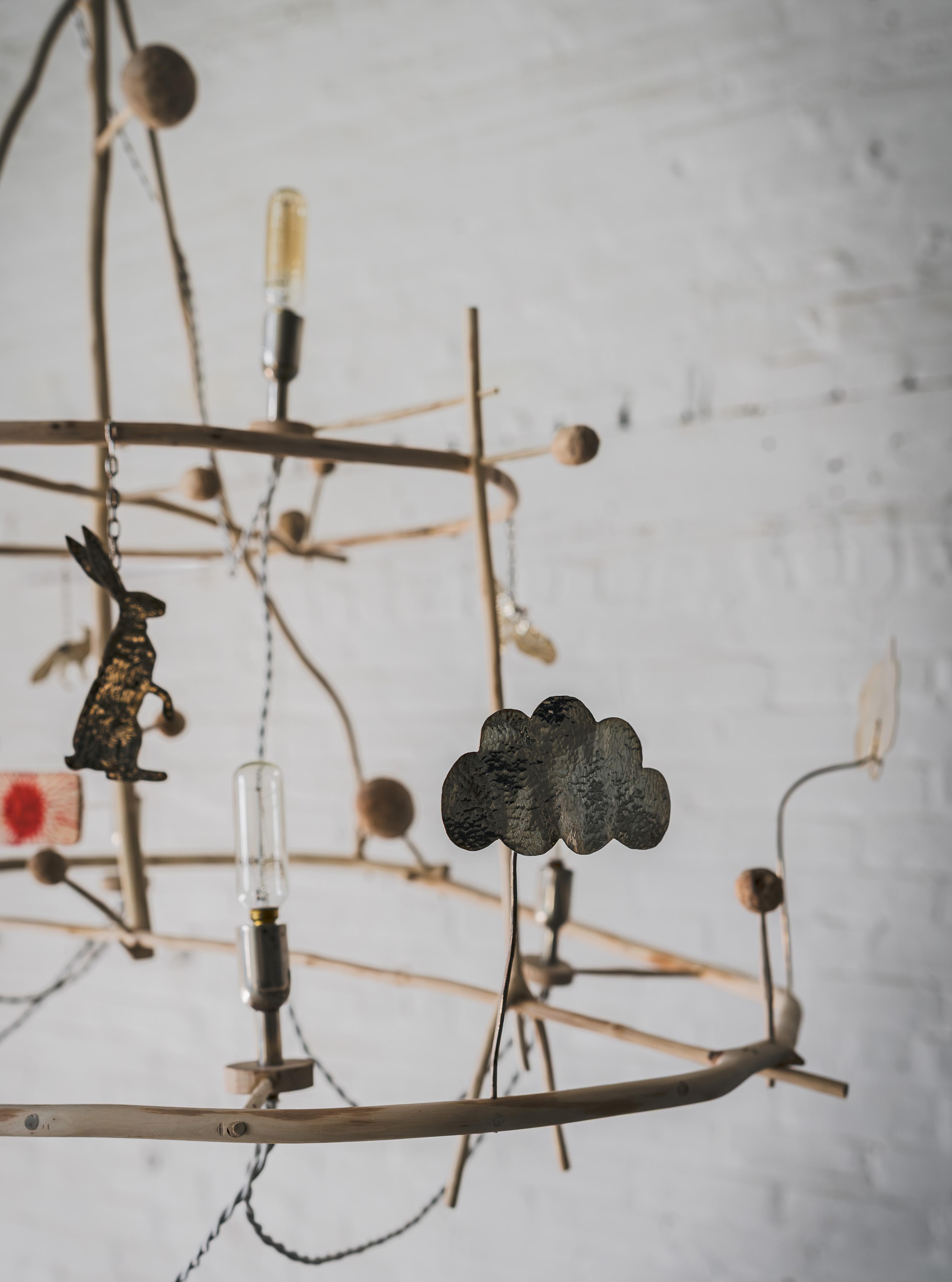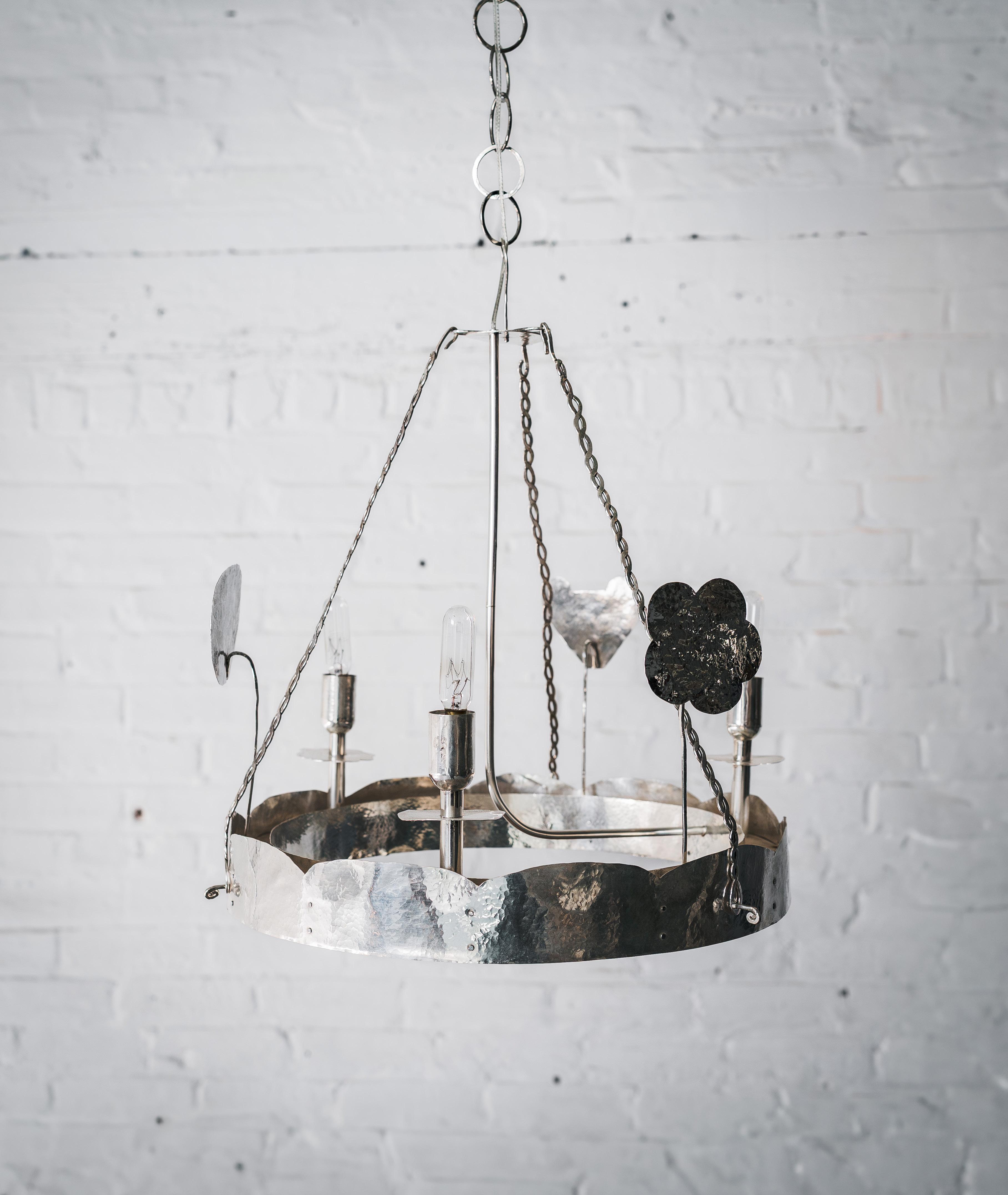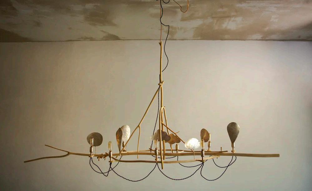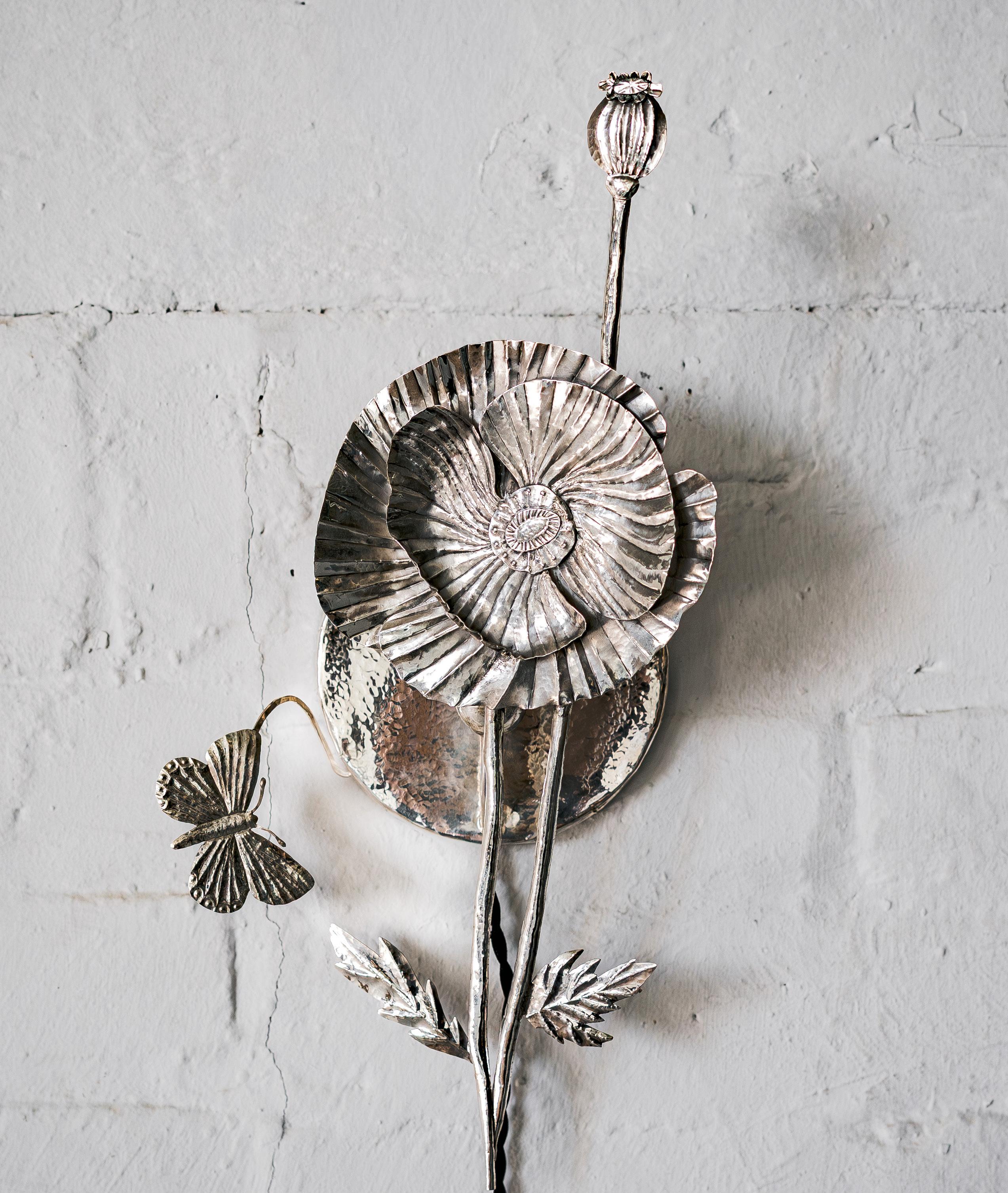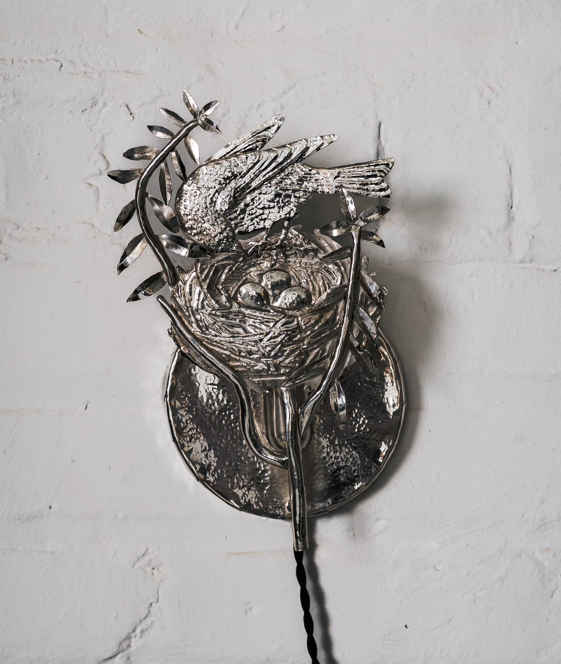 Found branches, hammered silver