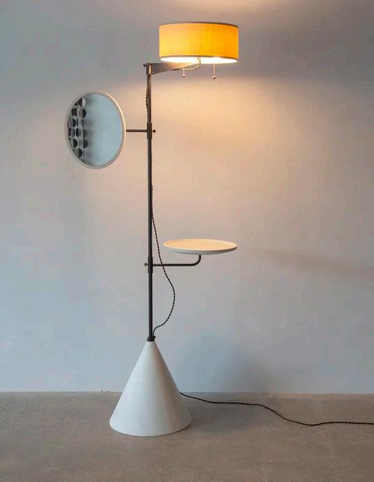 Base: 16”W Diameter; Light: 74”H ; Tray: 14”W Diameter; Mirror: 11”W x 14”H; Shade: 14”W x 5.75”H