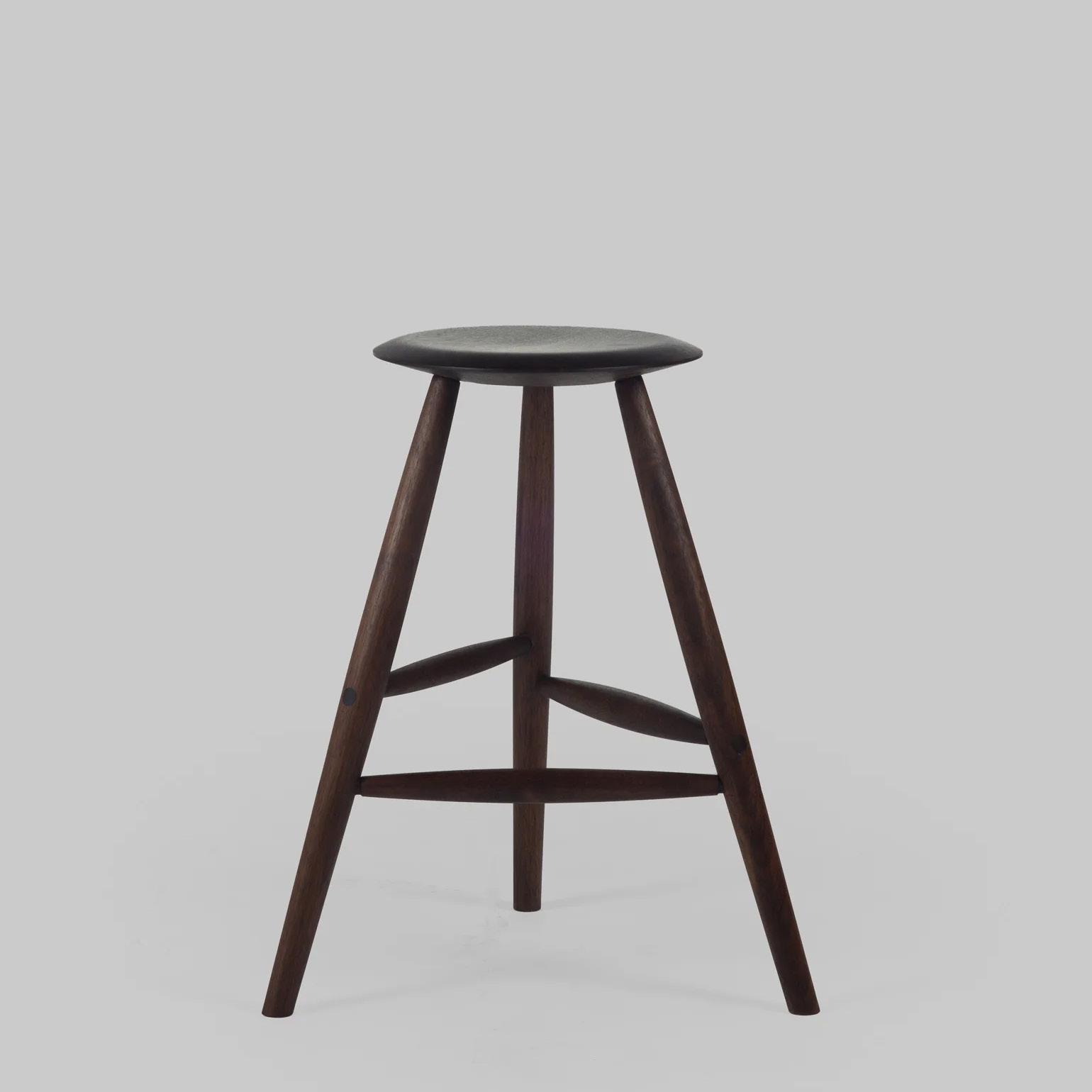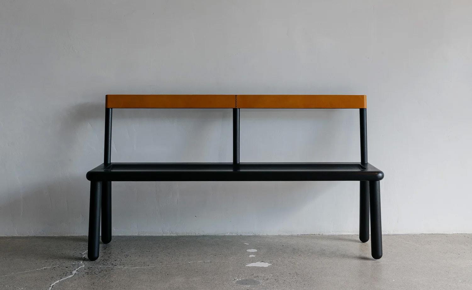 AMERICAN BLACK WALNUT: bleached, oiled, ebonized; HARD MAPLE: bleached, oiled, dyed silver gray; WHITE OAK: bleached, oiled, fumed, ebonized, dyed silver gray; Shown in ebonized American black walnut and yellow leather