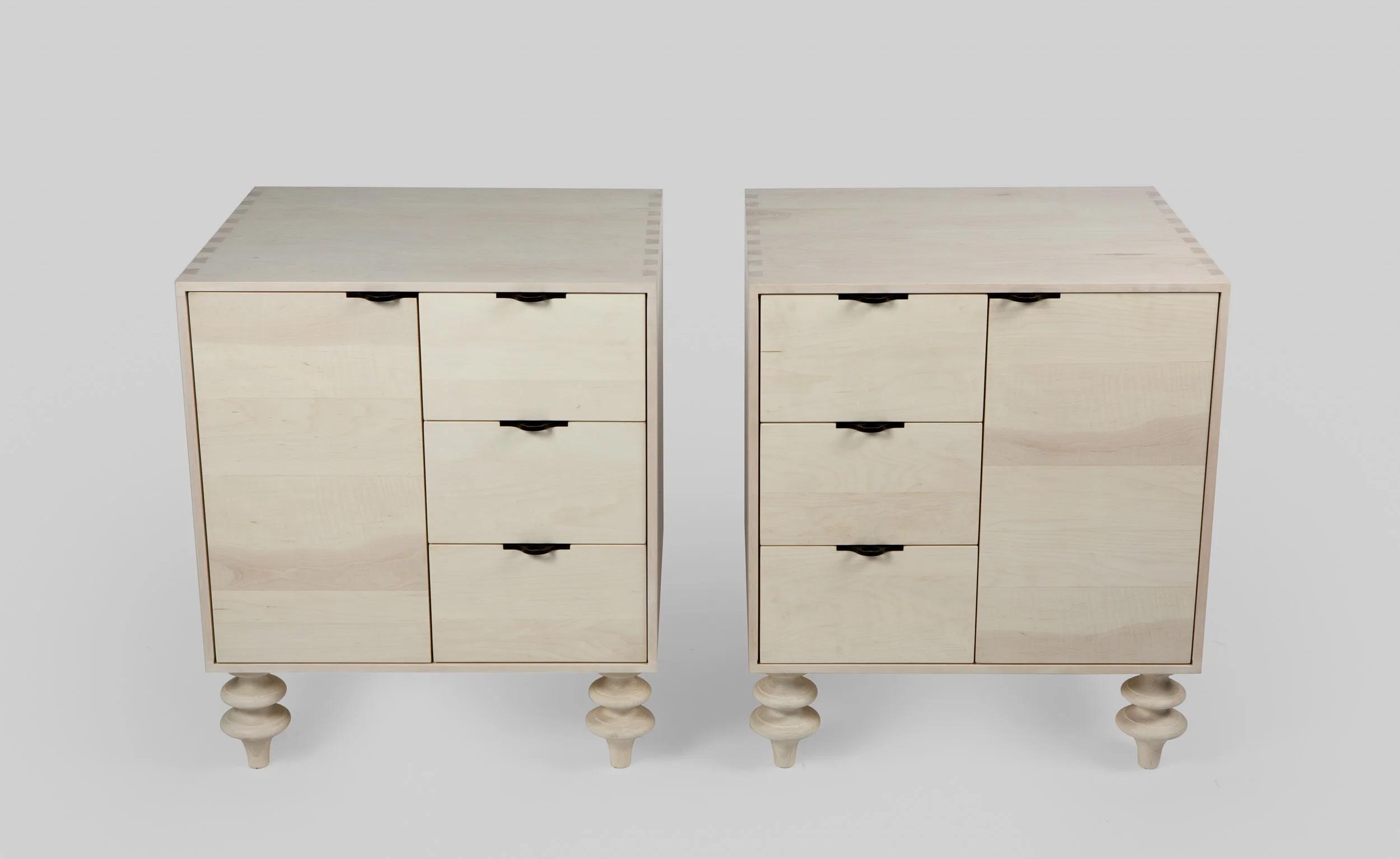 Materials: AMERICAN BLACK WALNUT: bleached, oiled, ebonized; HARD MAPLE: bleached, oil; WHITE OAK: bleached, oiled, fumed, ebonized