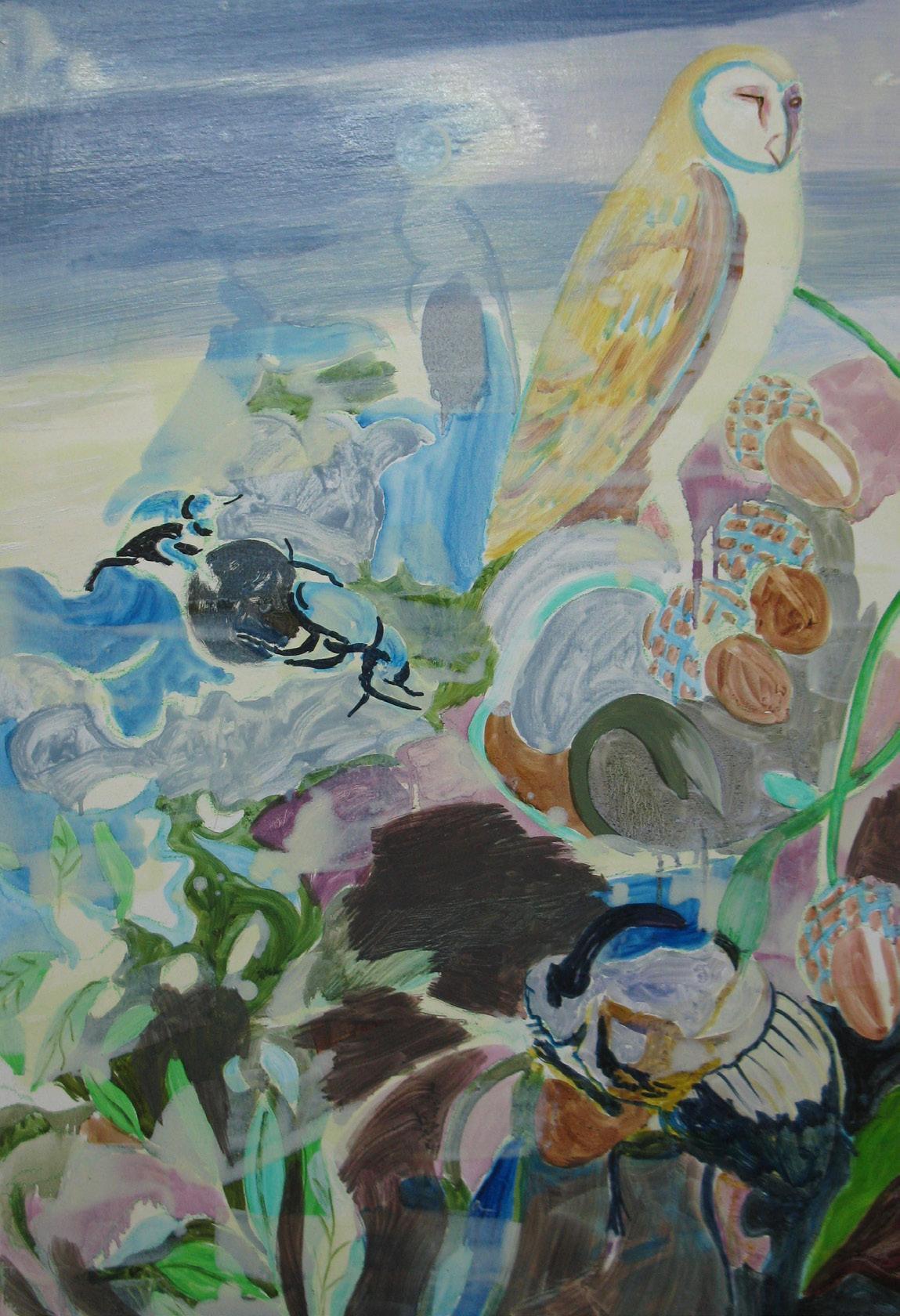 Acrylic and crayon on paper