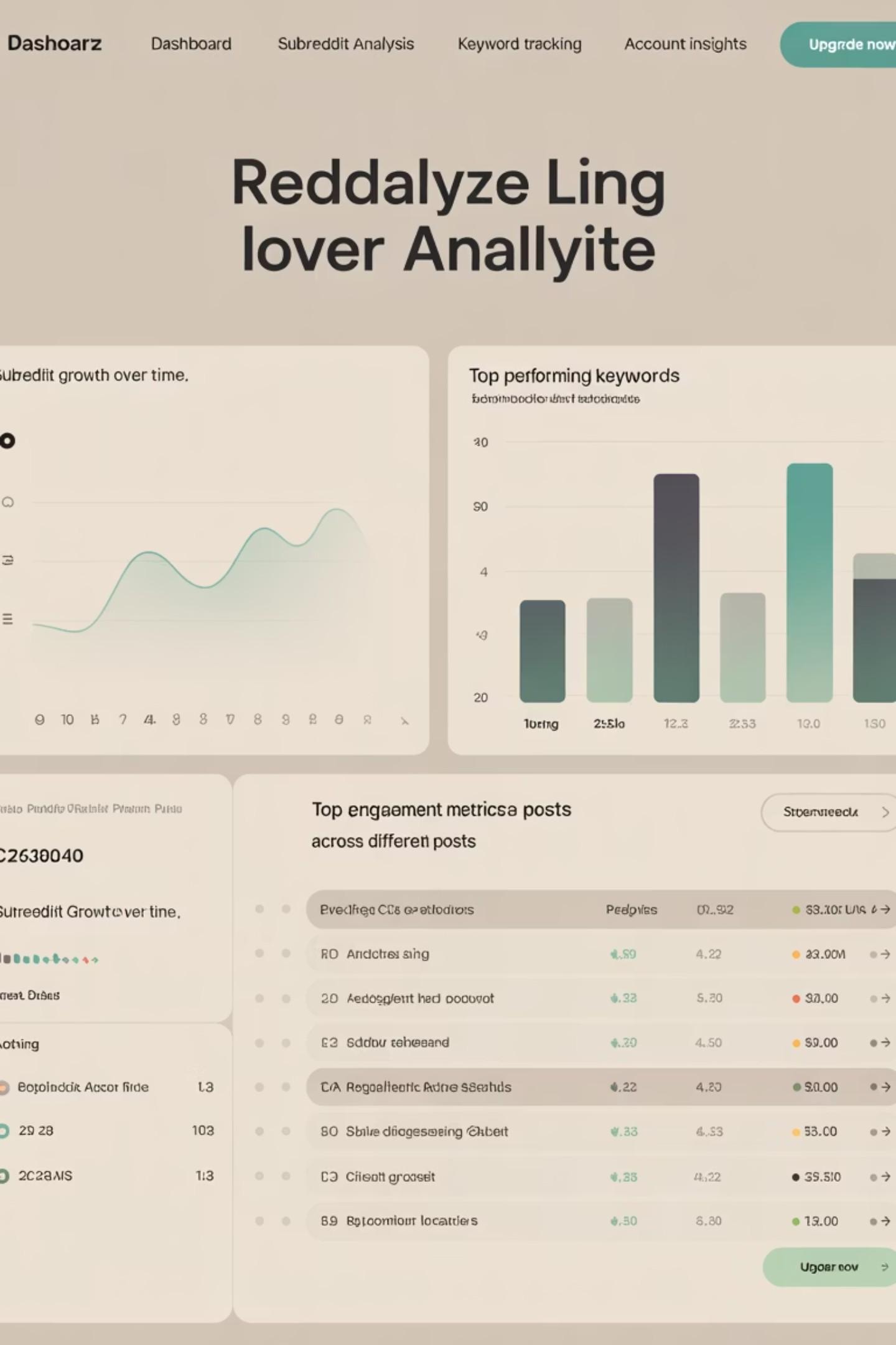 Comprehensive Tracking Track key post metrics, top keywords, popular flairs, and best-performing posts.