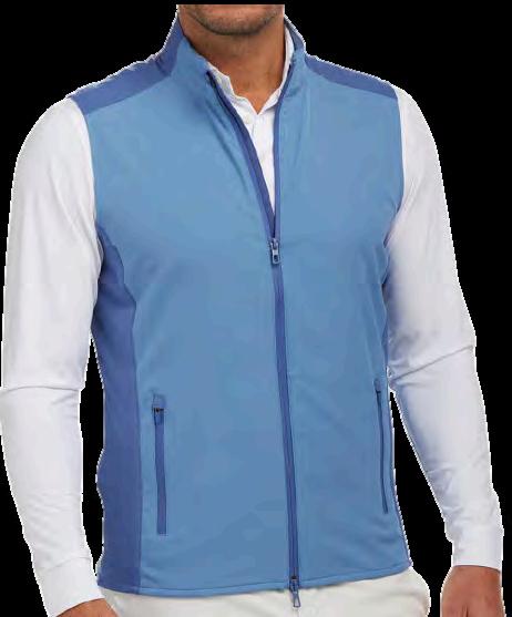 Features AIRATION™ perforated fabric engineered specifically for warmer weather and provides stretch for the golf swing as well as hidden chest and side pockets