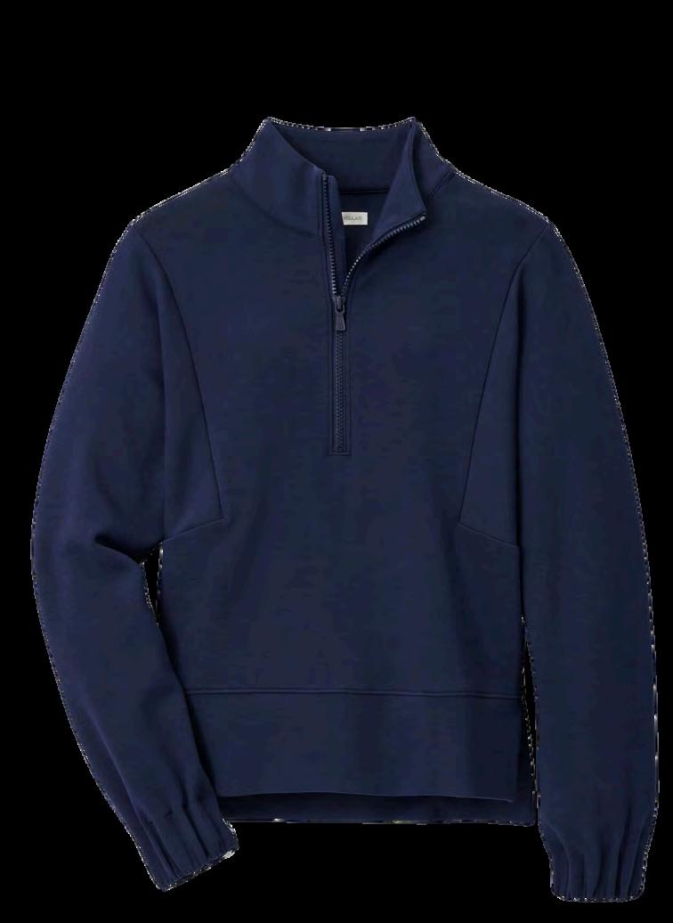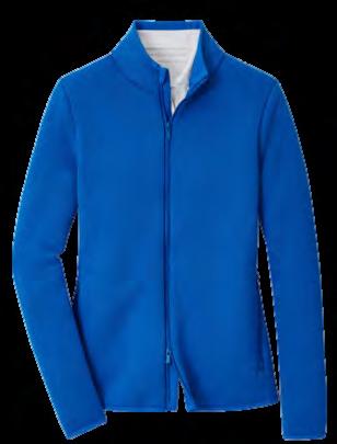 Featuring four-way stretch, wicking, knit collar, banded sleeves and notched hem