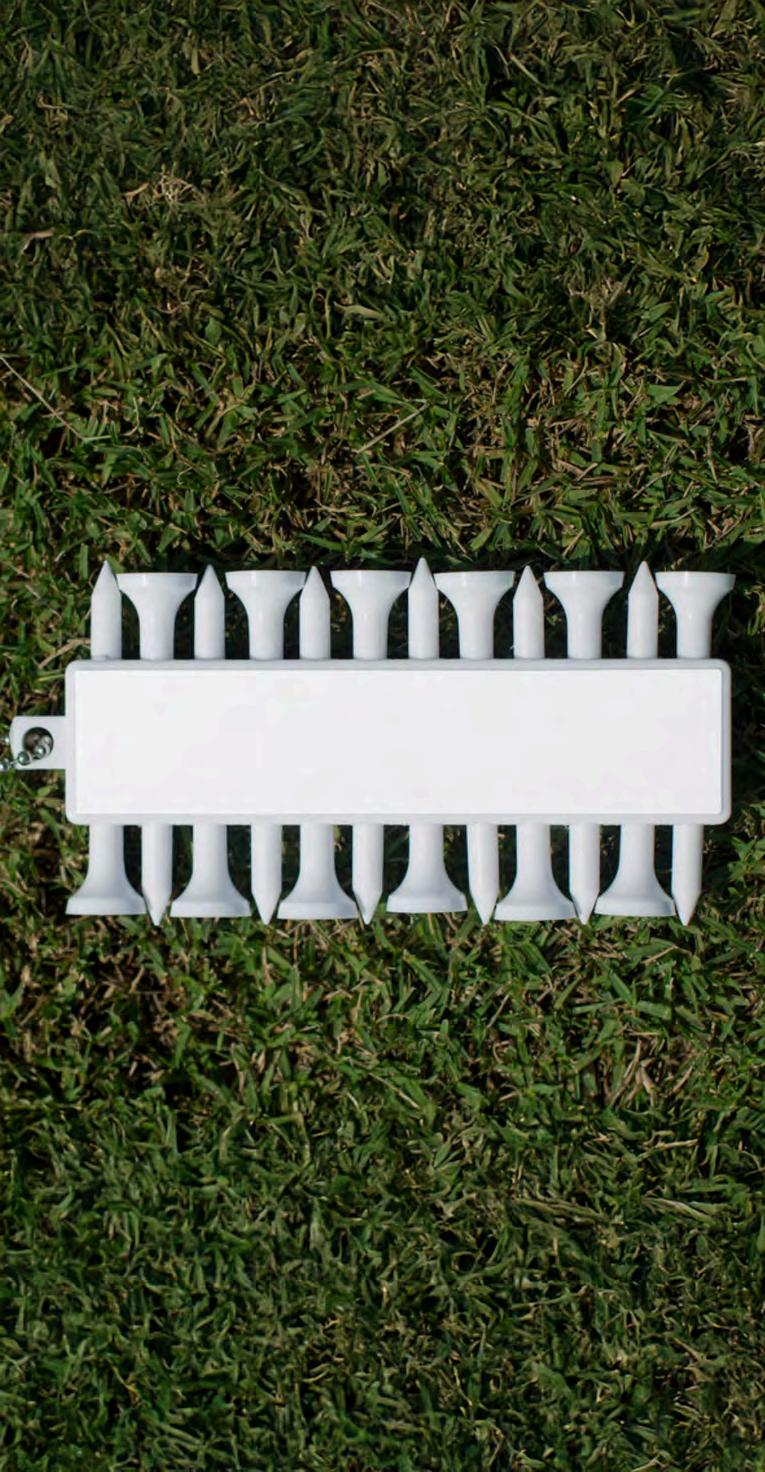 Featuring webbing loop for storing extra golf tees and wipeable interior for easy cleaning