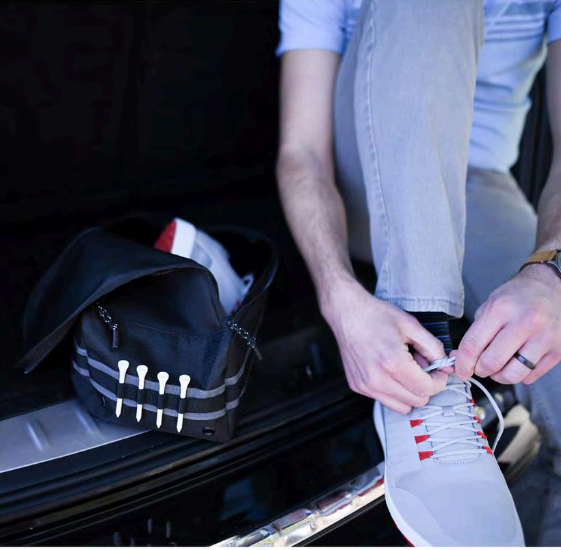 This shoe bag allows you to easily carry and stow your golf shoes