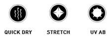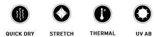 Featuring four-way stretch, wicking, easy-care properties, UPF 50+ sun protection and odorresistance properties