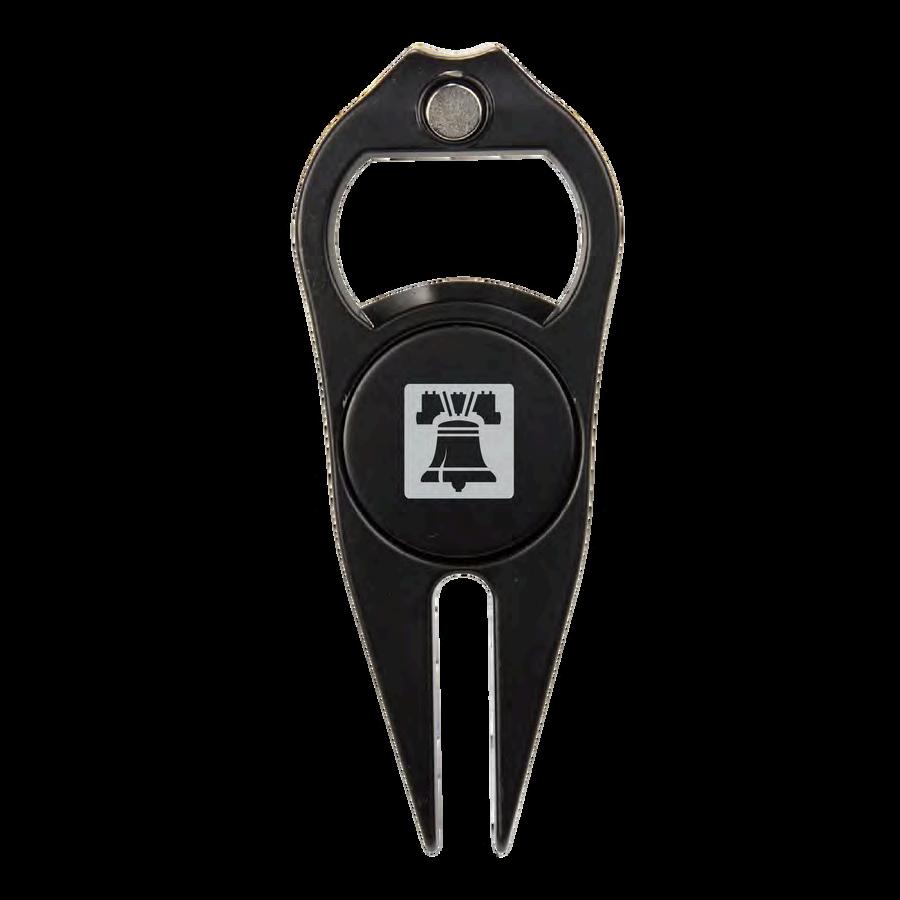 This versatile 3-in-1 tool combines everything you need, from fixing pitch marks to marking your ball and opening a cold beverage. Features durable metal construction.