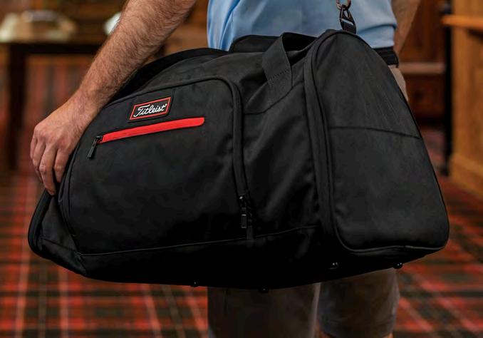 Quality Angolan leather with durable zippers and handle. Features shoe compartment and removable accessories pouch including 6 white Par Shoe Bag