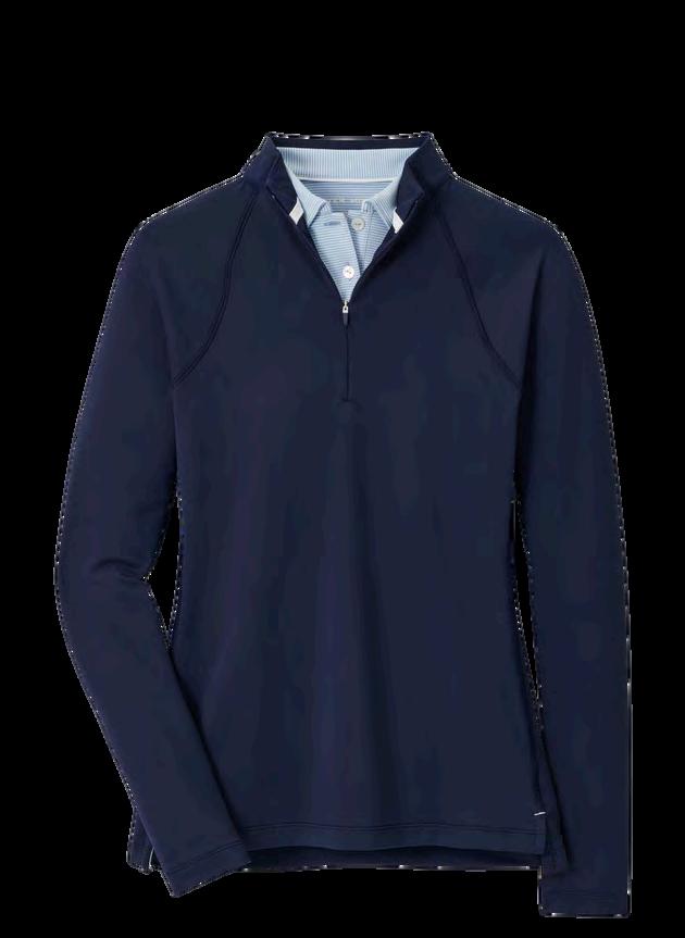 100% polyester golf quarter zip featuring Omni-Wick™, Omni-Shade™ UPF 30 sun protection, contrast cover stitch and zipper and zippered arm pocket.