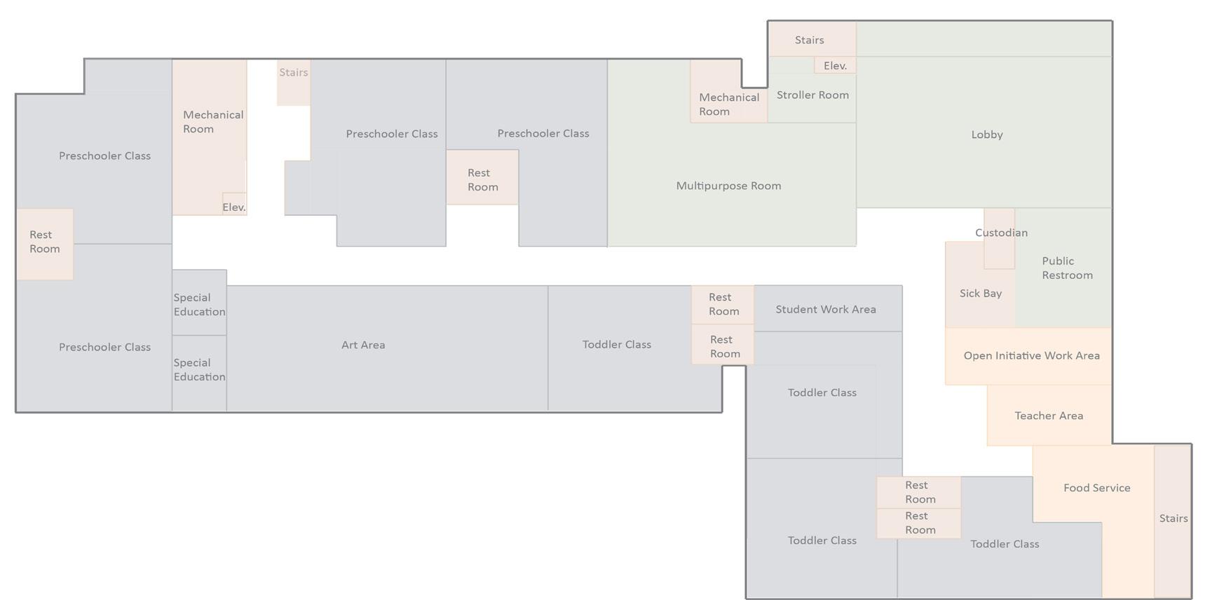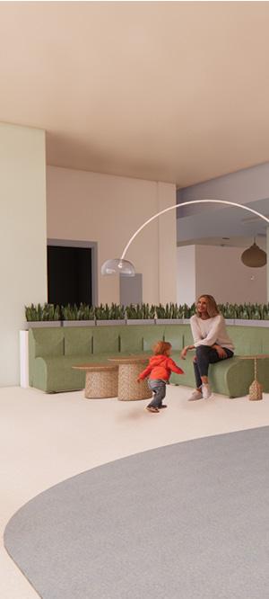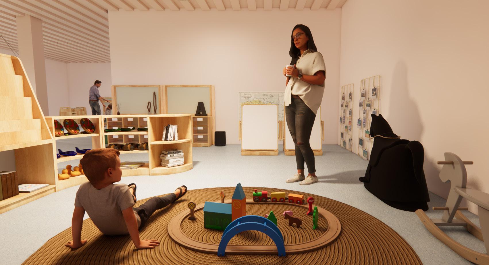 This childcare developmental center is following the Reggio Approach, which is why having the perspective of “life in their shoes” for the children is so important. Creating a playful environment for all users will promote positive feelings associated with learning.