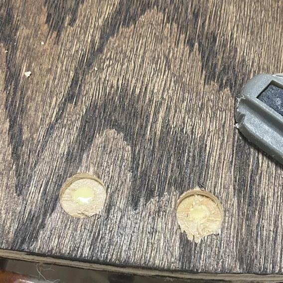 7. Use the wood filler to fill the sink holes, when stable. Once filler is dried, use the stain over those holes to blend it in.