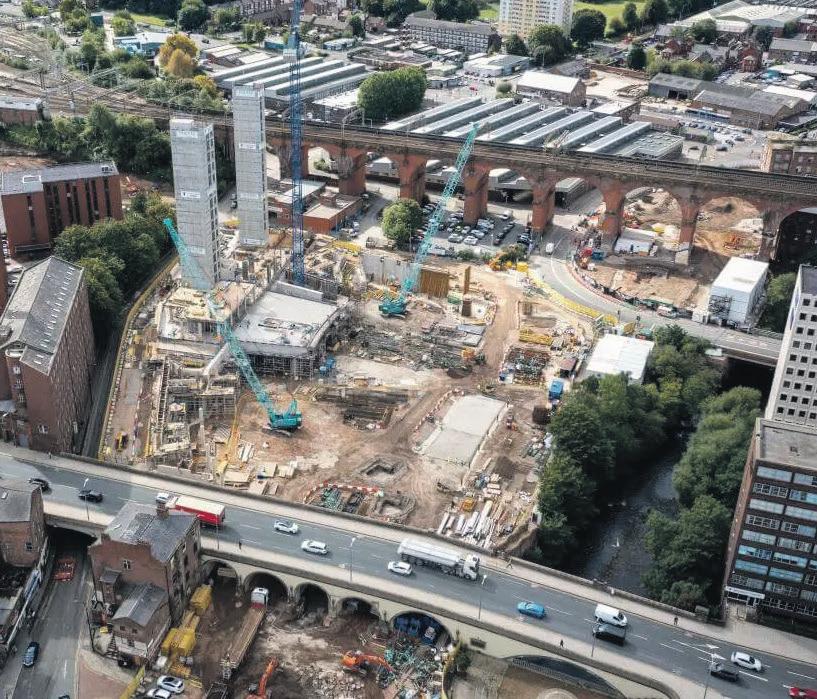 As well as a modern transport interchange, the project will also see the construction of a new two-acre park and 196 high-quality residential apartments. Construc tion also began this summer on a new bridge to link the new bus interchange with Stockport’s train station.