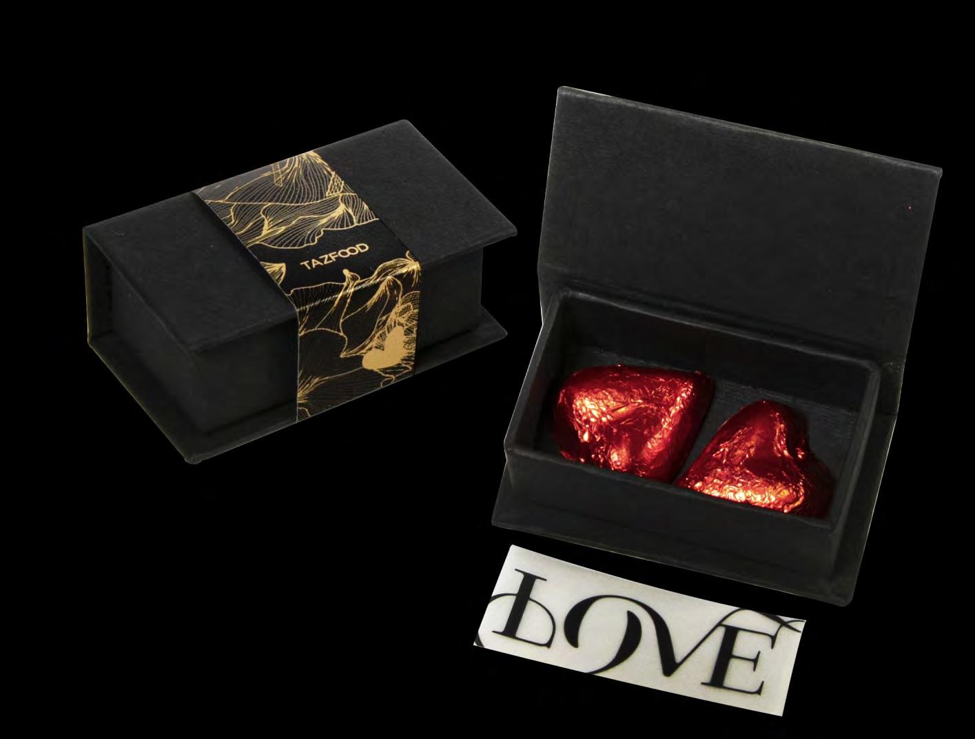 1. N. 12 Cremini alla Nocciola con fascetta “Love”, n. 12 Cuori di Cioccolato stagnola rossa (fondente) e n. 6 Praline Pirottino colate a mano.