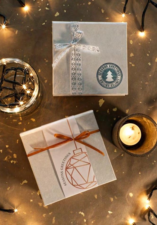 Ogni confezione, infatti, è personalizzabile con il logo del Cliente che potrà, inoltre, scegliere il design natalizio che preferisce.
