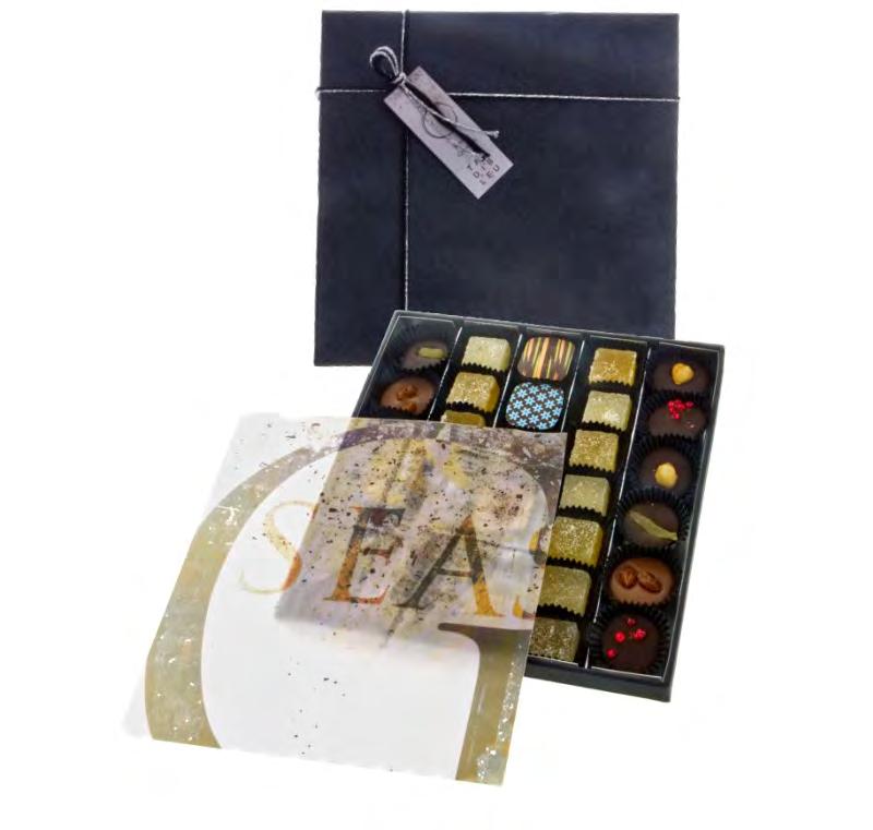 Delicatissimi cioccolatini tartufati a base di nocciole, pistacchi o amaretti ed avvolti in un elegante incarto a ciuffo, praline dal cuore tenero, ricercate praline ganache realizzate con pregiati Gran Cru da fave di Cacao monorigine e decorate con eleganti grafiche design, frutta secca ricoperta con cioccolato di alta qualità.