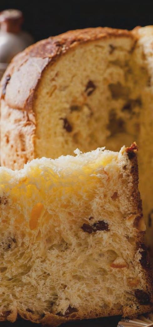 Moelleux et parfumé, le panettoni est fabriqué avec les ingrédients les plus nobles : beurre des pâturages des montagnes, œufs de poules élevées en plein air, écorces d'oranges siciliennes pelées à la main, raisins de Corinthe parfumés, miel d'acacia et les meilleures amandes italiennes. Son moelleux est garanti par l'utilisation d'une précieuse levure mère naturelle ; travaillée quotidiennement par les mains expertes des maîtres levuriers, selon la recette traditionnelle, elle fournit le levain indispensable à la création du produit.