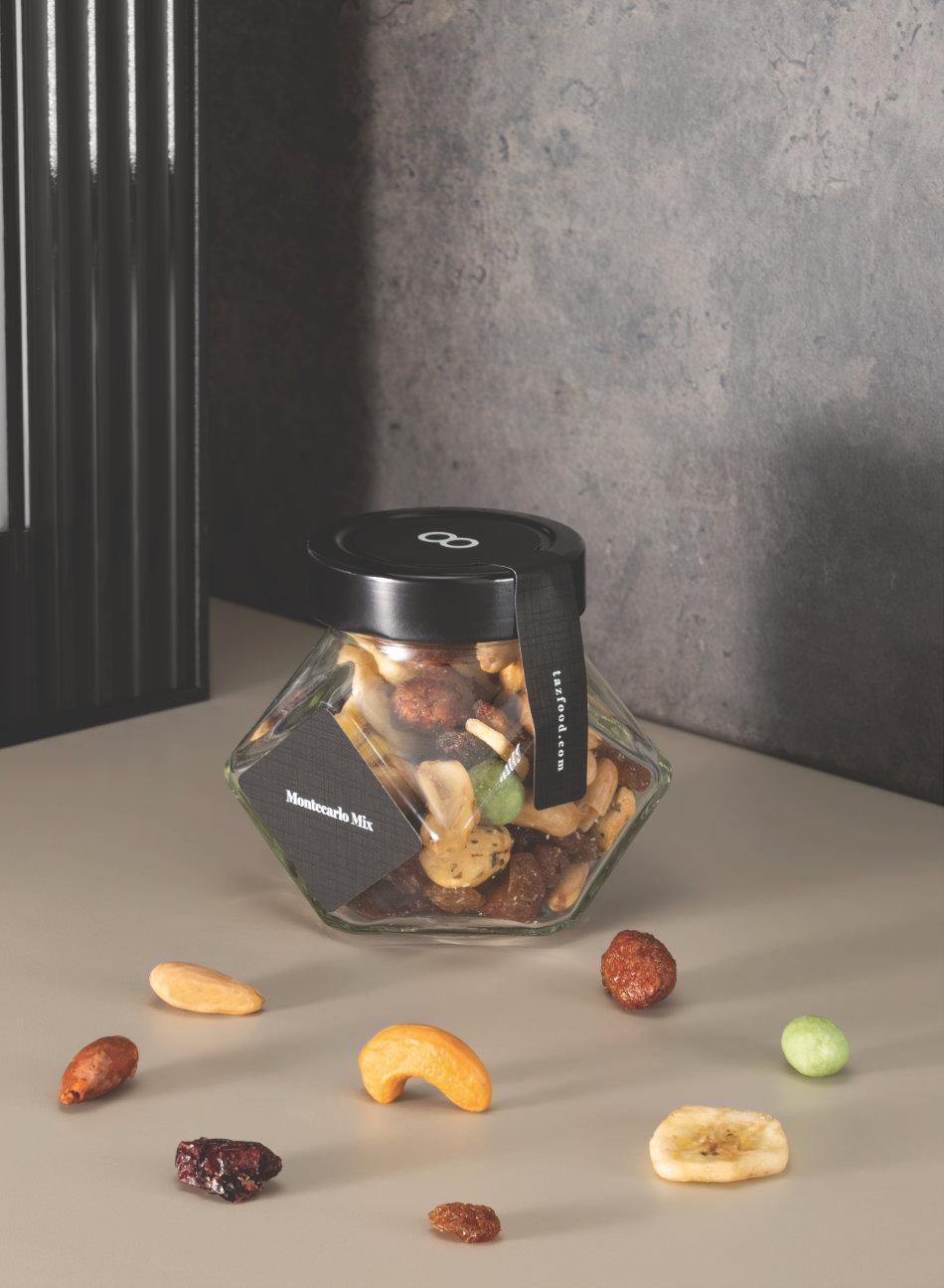 Ideal for showcasing carefully selected gourmet products, such as artisanal baked savory snacks or premium coated nuts.