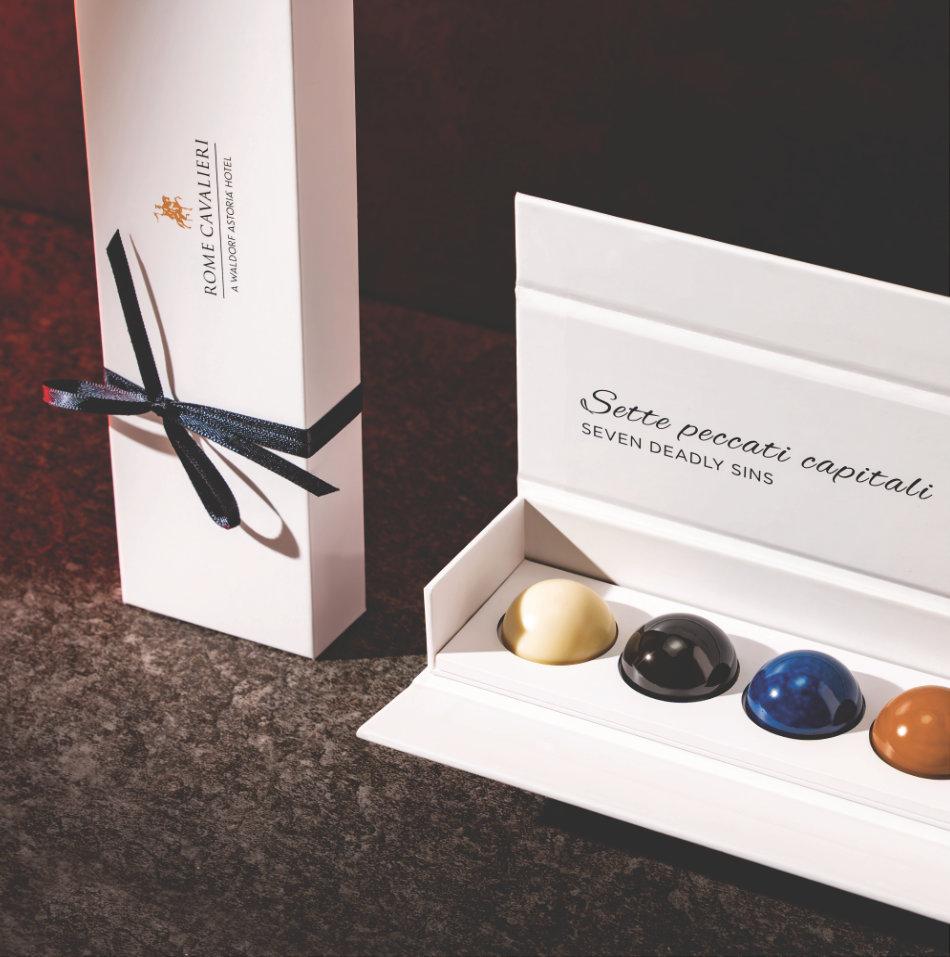 In collaboration with the Rome Cavalieri hotel, we brought to life a unique amenity. Executive Pastry Chef Dario Nuti worked side by side with our experts to craft seven distinct pralines, each dedicated to one of the deadly sins, enclosed in packaging specifically designed to elevate the concept.