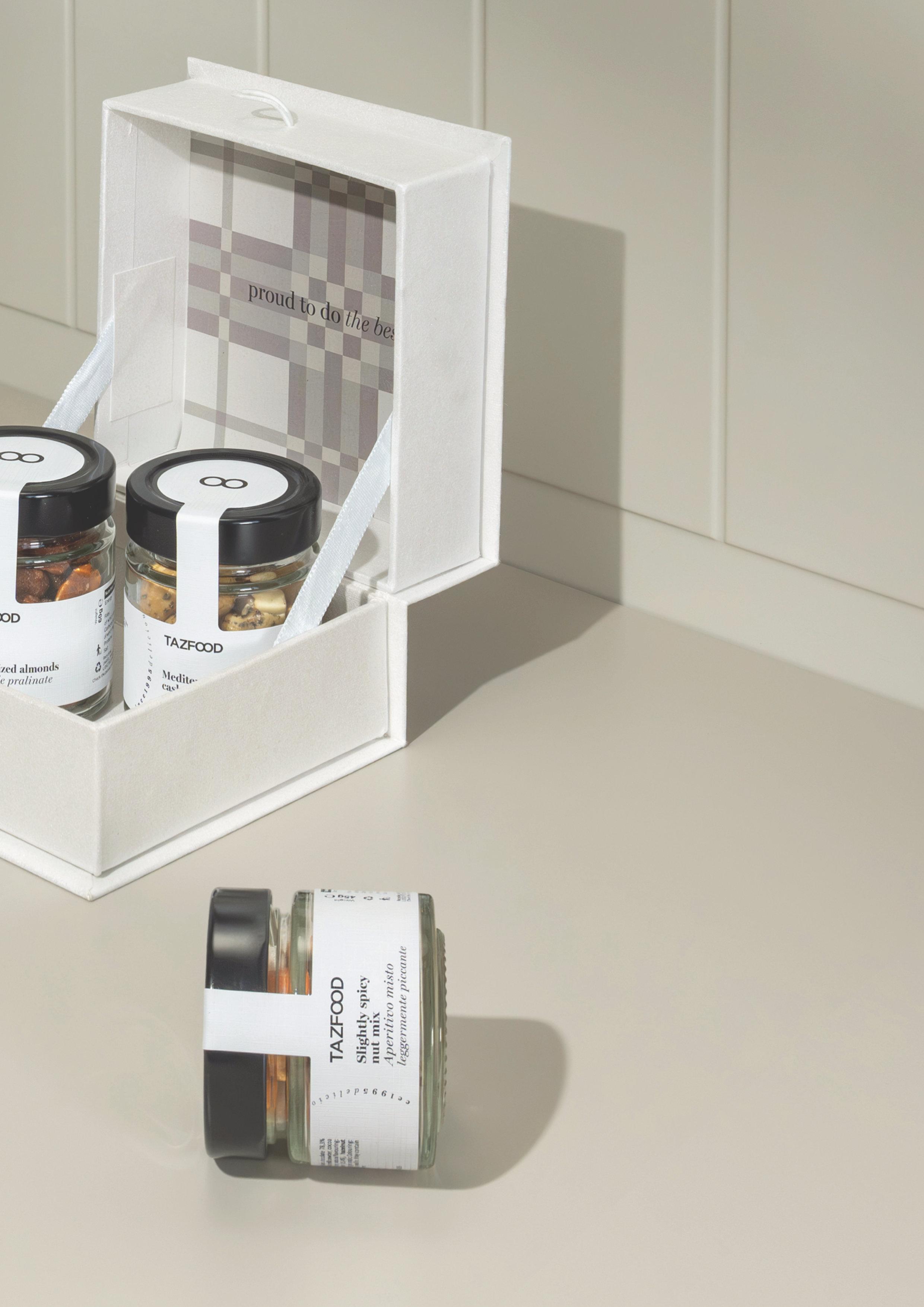 TAZCLASSICS represents our most iconic gourmet specialties, designed to make every moment of the guest’s stay memorable, from welcome to in-room minibar. We offer a wide selection of refined flavors, carefully handpicked by us with a strict focus on quality and consistency. Our offerings include artisanal cookies, premium nuts, exquisite chocolates, and much more, also available in bulk packaging.