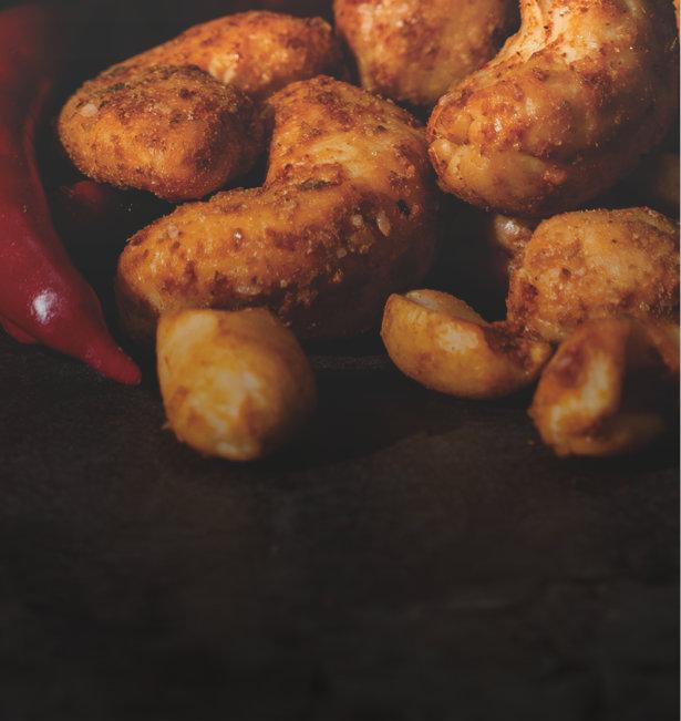develop specialties with an authentic, refined taste. Every creation is crafted artisanally without artificial flavorings to preserve its true essence. Our current production includes flavored nuts, gourmet cookies, and savory snacks.