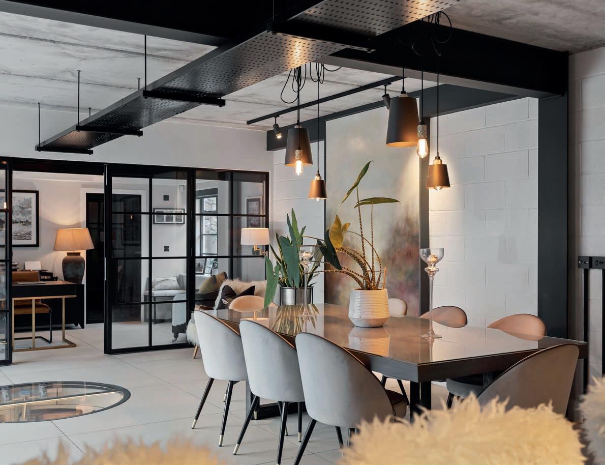 Bathed in natural light, the area extends effortlessly into the garden to create a versatile and bright space.