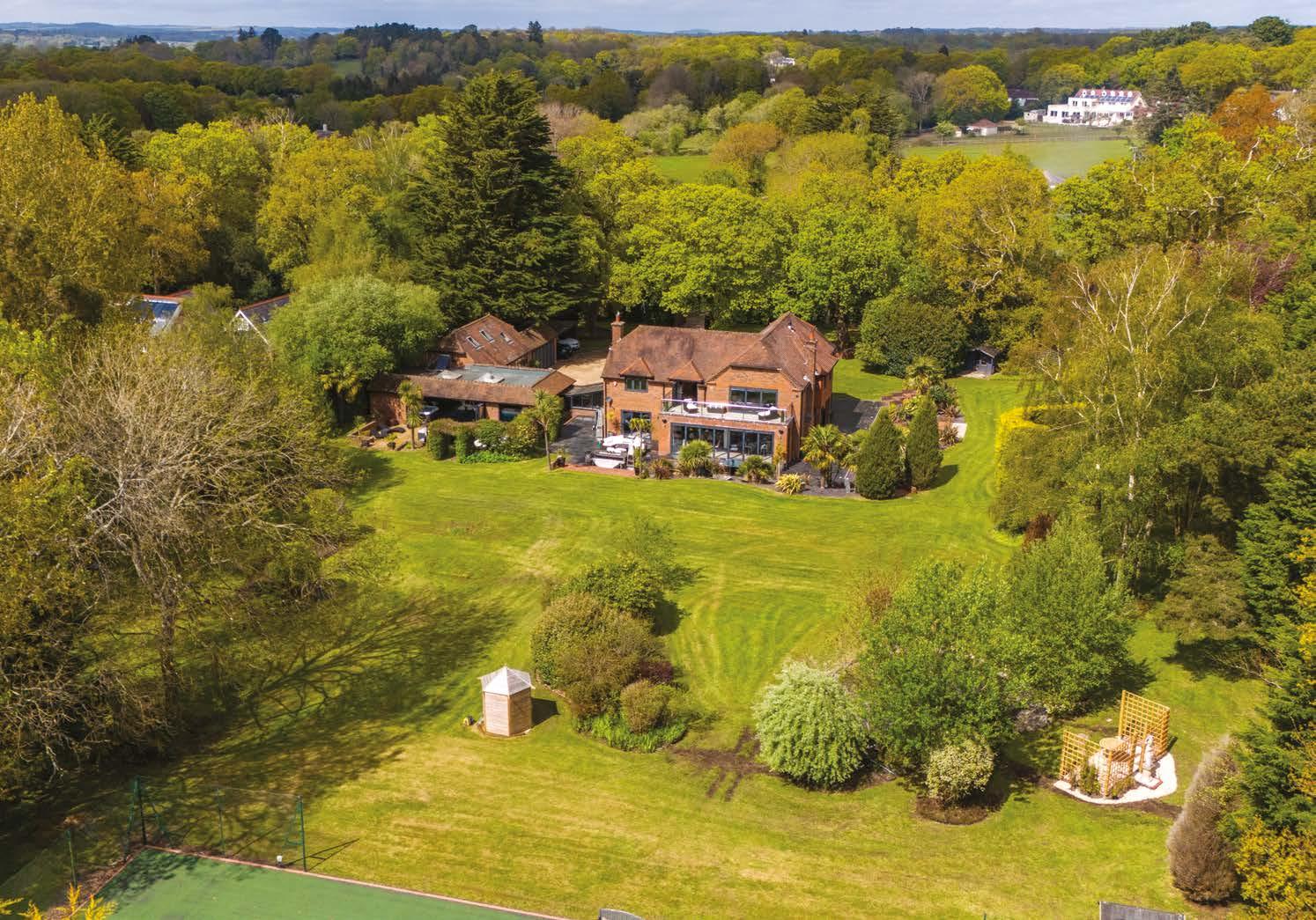 A handsome country retreat situated on the edge of Ringwood close to the New Forest, set in grounds of about two acres and features an indoor swimming pool complex including gymnasium and extended garaging. This imposing five bedroom three bathroom detached family home is beautifully presented and features a magnificent modern and stylish open plan kitchen/living and dining room with high quality appliances. Outside, the property is surrounded with stunning parkland grounds and an outside all weather tennis court.