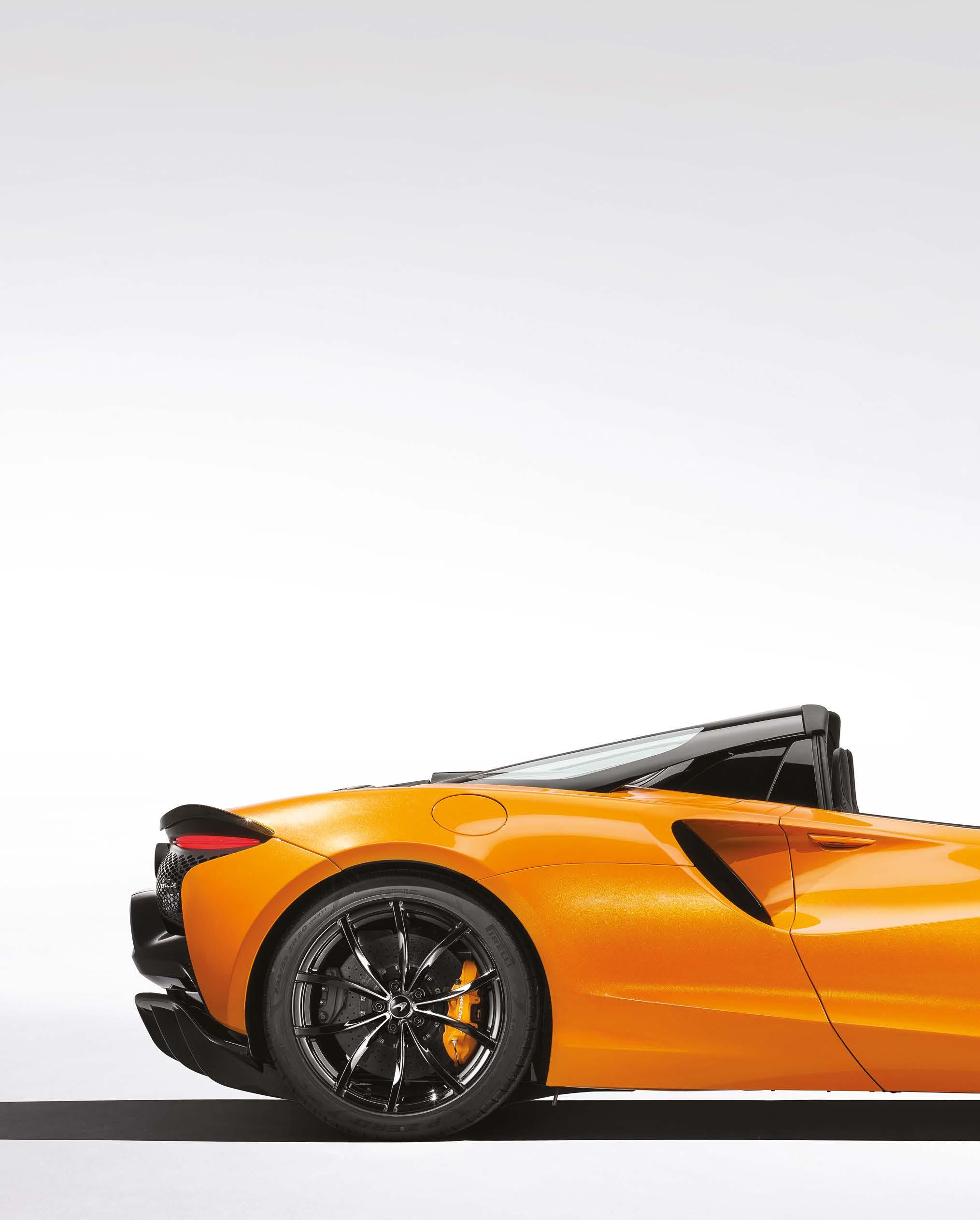 More importantly, in combination with the 700PS of the high-performance hybrid powertrain, this gives a power-to-weight ratio of 480PS/tonne at lightest dry weight, which perfectly positions the Artura Spider to optimise every aspect of supercar highperformance, including exploiting its midmounted engine, rear-wheel drive chassis layout to the full.