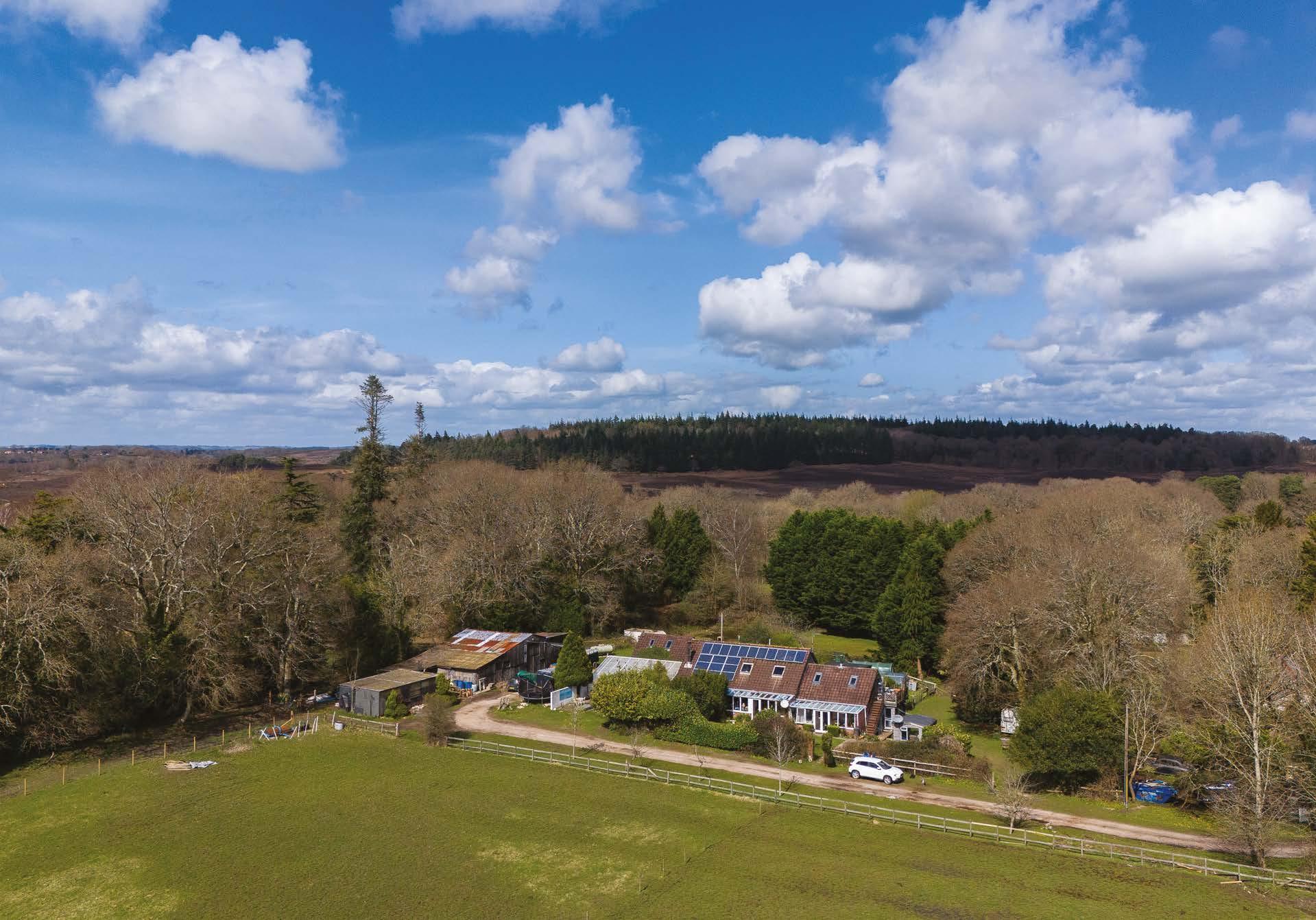 The property is truly a jewel within the New Forest, offering a sanctuary of peace, privacy and picturesque beauty. A unique opportunity to purchase an ideal redevelopment site in a stunning New Forest location of a total 11 acres approximately, with forest access, overlooking Linwood. The main residence is nestled within a one-acre south facing plot, the property consists of a ‘residence’ with annexe, lodge, pool house, stables and barns with commanding views over a further 10 acres in the hamlet of Linwood. Available for the first time in over 50 years the property offers a unique potential, subject to planning permission, to create an outstanding new country residence in a landscaped parkland, or an equestrian estate with direct access to the New Forest.