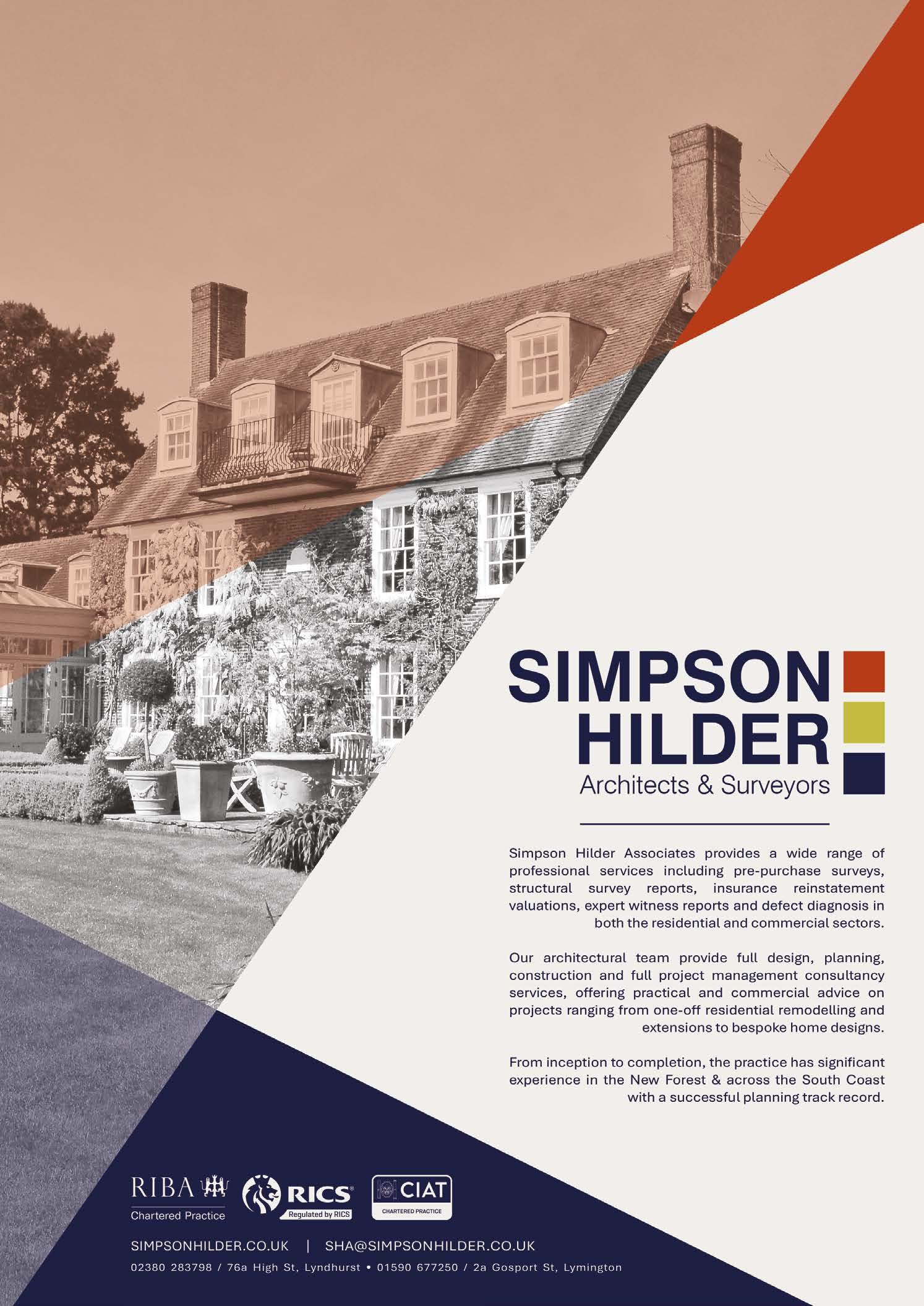 Front cover image of Lepe, Hampshire, kindly supplied by Julian Gazzard. Published by TBC Publishing Limited, Telephone: 01223 874483. ©TBC Publishing 2024. All rights reserved. Reproduction is forbidden except by express permission of the Publishers. The content of this magazine is believed to be correct but its accuracy is not guaranteed and it does not form part of any offer or contract. TBC Publishing Limited cannot accept responsibility for any omissions or errors. All property details were correct at time of submission. Photo credits pages 58 to 61: The Lamb Inn/Jim Champion; Blashford Lakes Nature Reserve/Andy Morffew; Eyeworth Pond/Gillian Thomas; Fordingbridge Town Hall/Mike Faherty; Godshill Ford/John Walton; Moyles Court School/ Tim Stickley.