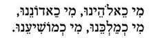 l'lim ba-e-li-lim, hish-ta-cha-vu lo kawl^e-lo-him.