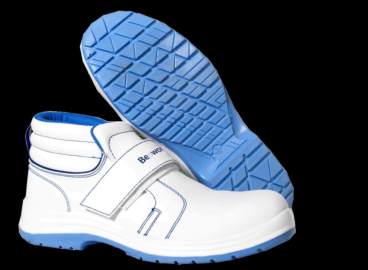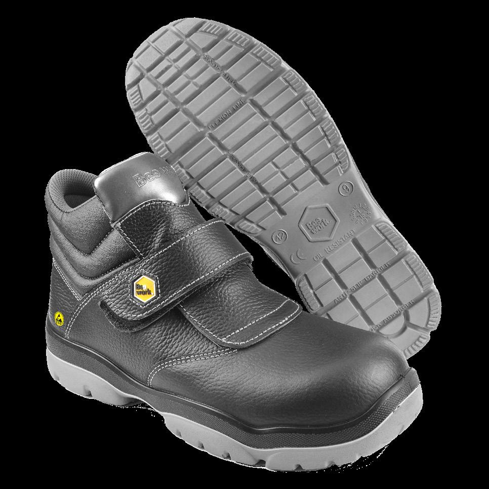 • SUELA: EVA y caucho-nitrilo antiestáticos; muy ligera; resistente a hidrocarburos; nivel de delizamiento SR.