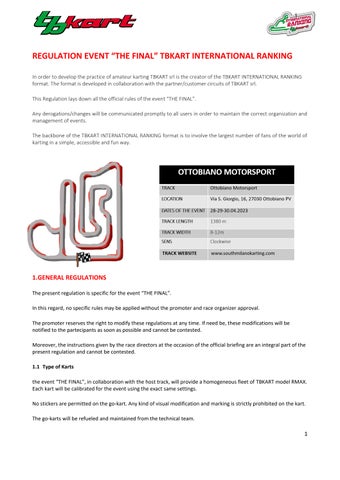 the event “THE FINAL”, in collaboration with the host track, will provide a homogeneous fleet of TBKART model RMAX Each kart will be calibrated for the event using the exact same settings.