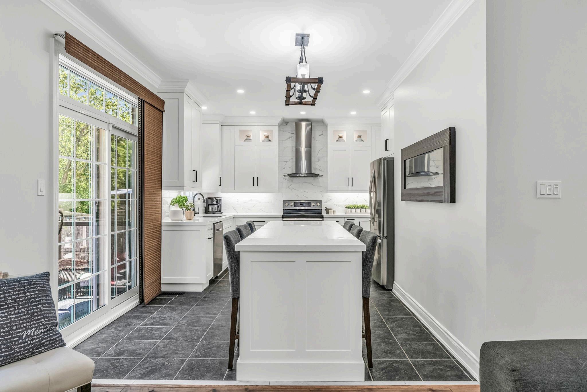 At the heart of the home lies a stunning, fully renovated kitchen complete with quartz countertops, stainless steel appliances, a designer tile backsplash, and an oversized island with seating for six perfect for casual meals or gathering with friends. With direct access to the backyard oasis, it's an inspiring space to start your day or unwind in comfort.