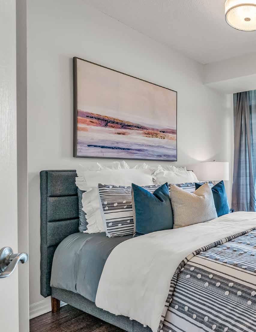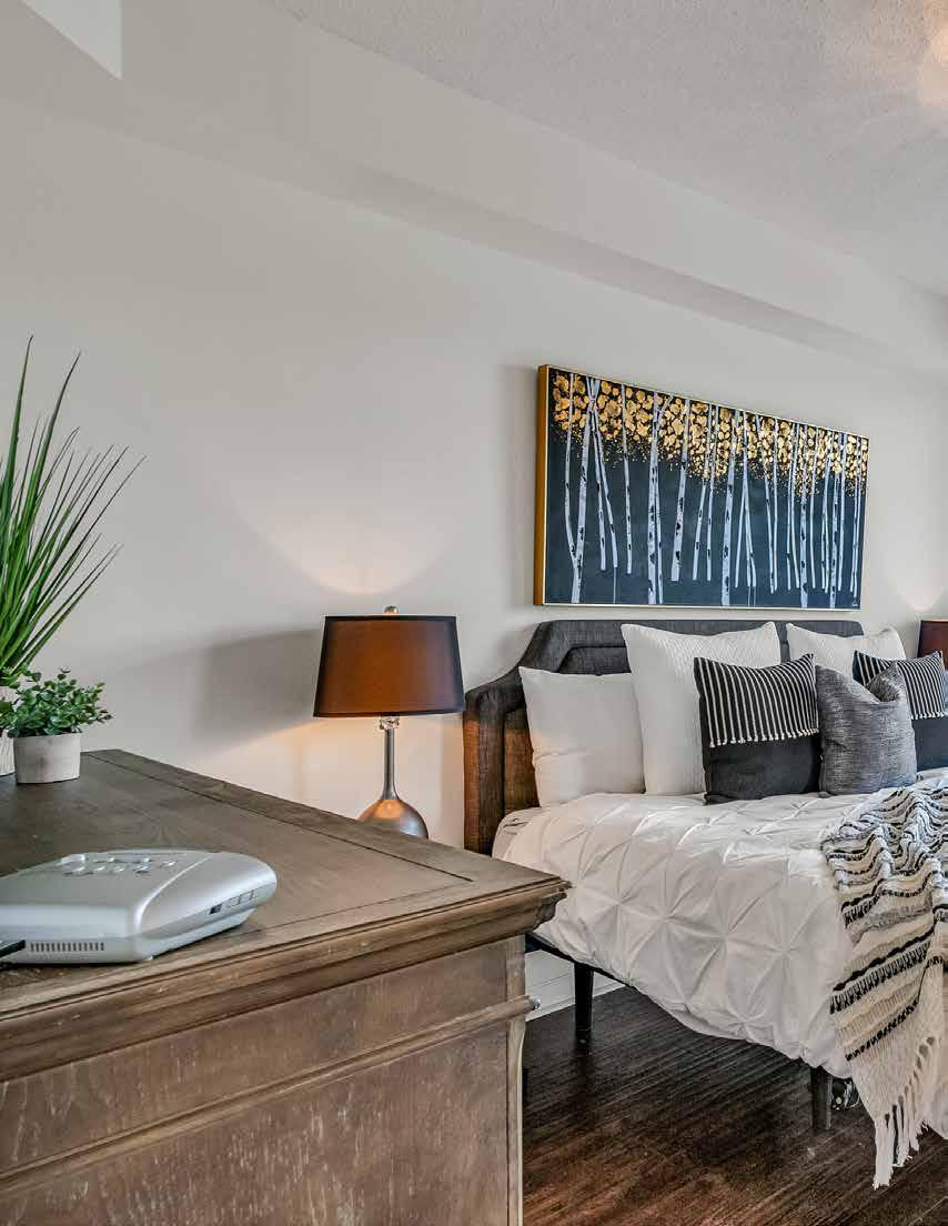 Once the canvas was ready, we layered in staging furniture, art, accessories, and textiles to elevate the experience. Plush pillows, cozy throws, crisp bedding, and carefully selected artwork helped to define each space while adding warmth and personality. We made it a point to enhance the lifestyle appeal of the condo—buyers needed to feel how wonderful it would be to live here.