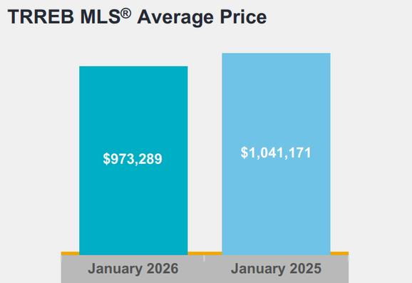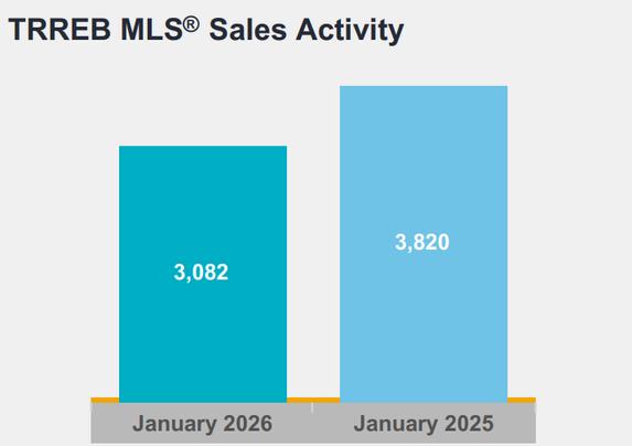 TORONTO, ONTARIO, FEBRUARY 4, 2026 - There were 3,082 home sales reported in January 2026 – down by 19.3 per cent compared to January 2025. New listings entered into the MLS® System amounted to 10,774 – down by 13.3 per cent year-over-year.