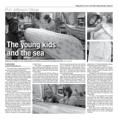 The young kids and the sea Students work on a Sassafrass 12 canoe at Bayles Boat Shop in Port Jefferson; and a German Pirate sailing dinghy design at right. Photos by David Ackerman
