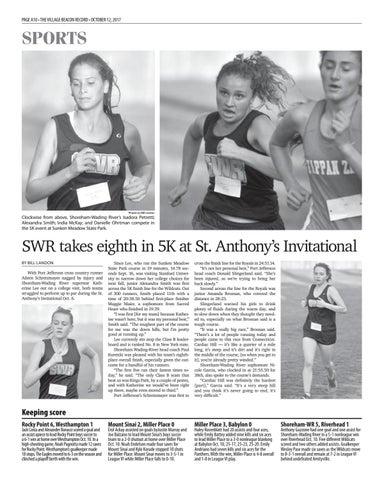 SWR takes eighth in 5K at St. Anthony’s Invitational By Bill landon With Port Jefferson cross country runner Aileen Schretzmayer nagged by injury and Shoreham-Wading River superstar Katherine Lee out on a college visit, both teams struggled to perform up to par during the St. Anthony’s Invitational Oct. 6.
