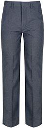 Plain navy tailored trousers to below the ankle. Black trousers are not acceptable. No jean/denim material with studs or double stitching. If a belt is worn, it must be black or navy. Trousers should not be too tight.