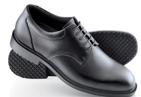 Footwear must be appropriate i.e. low heel, all black leather, or leather look, polishable. Shoes must not be meant for sport and should not have a reinforced rubber toe area. Plain means no obvious logos, mesh, or canvas).