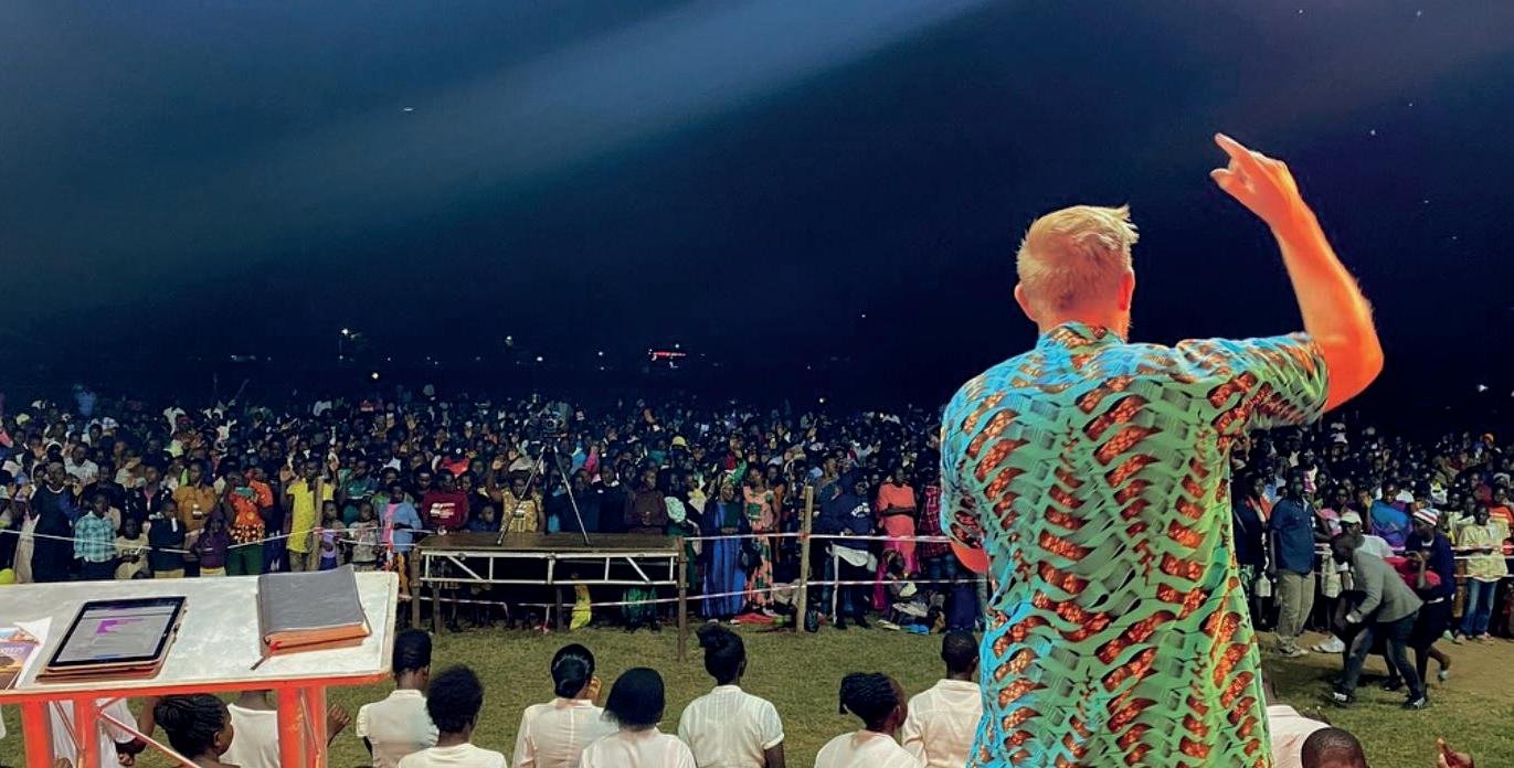Daniel Smenes er fulltidsevangelist. Her taler han på en kampanje i Afrika.