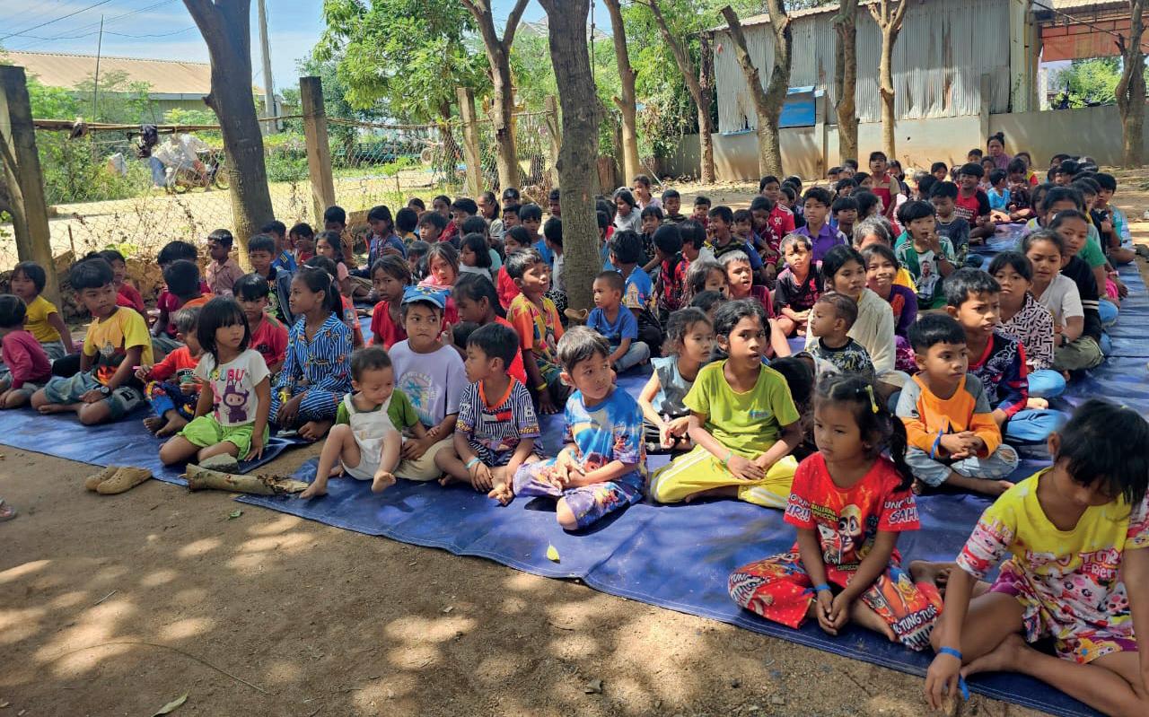 også en skole der de delte ut sko til nesten 200 barn.