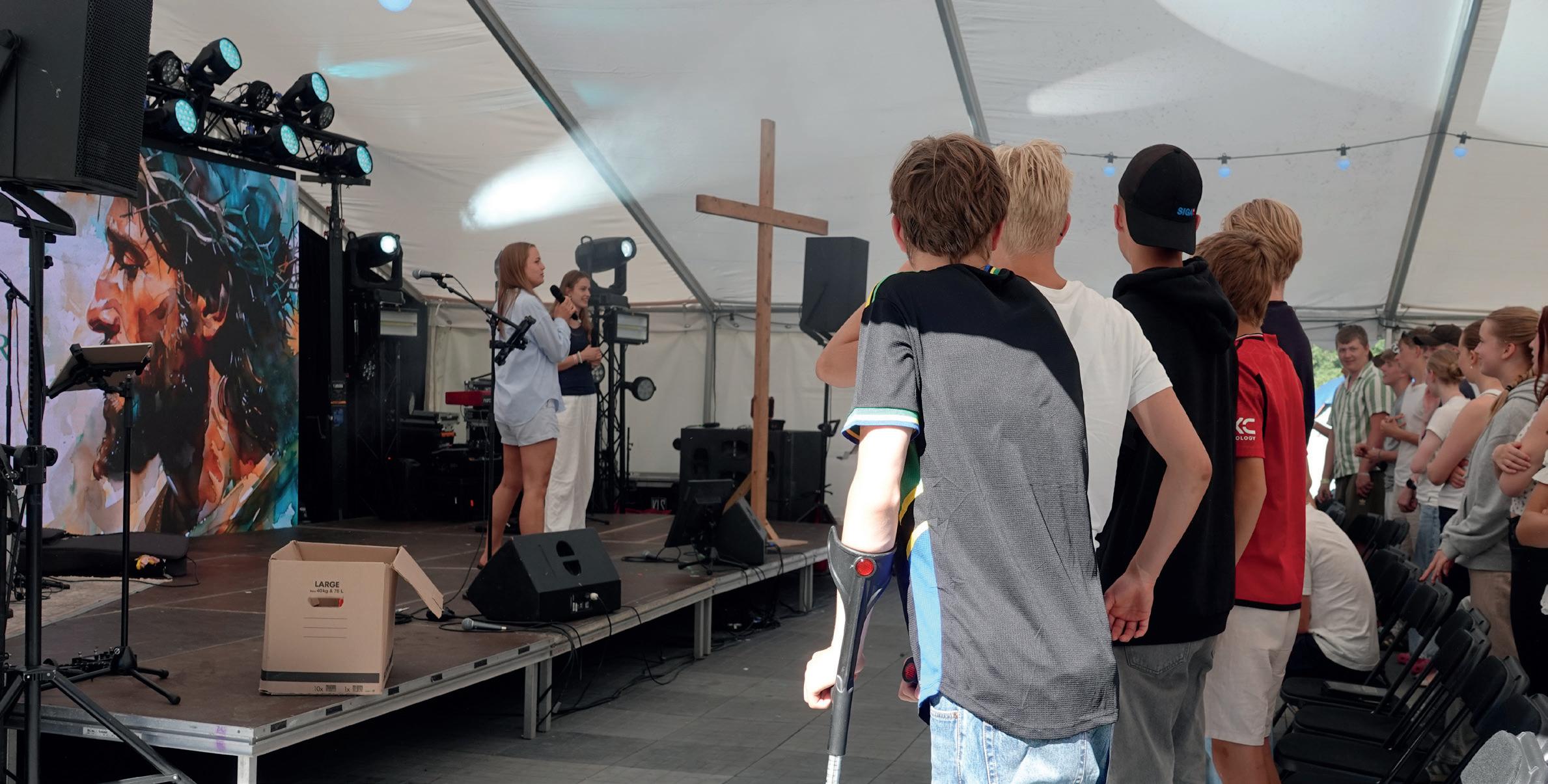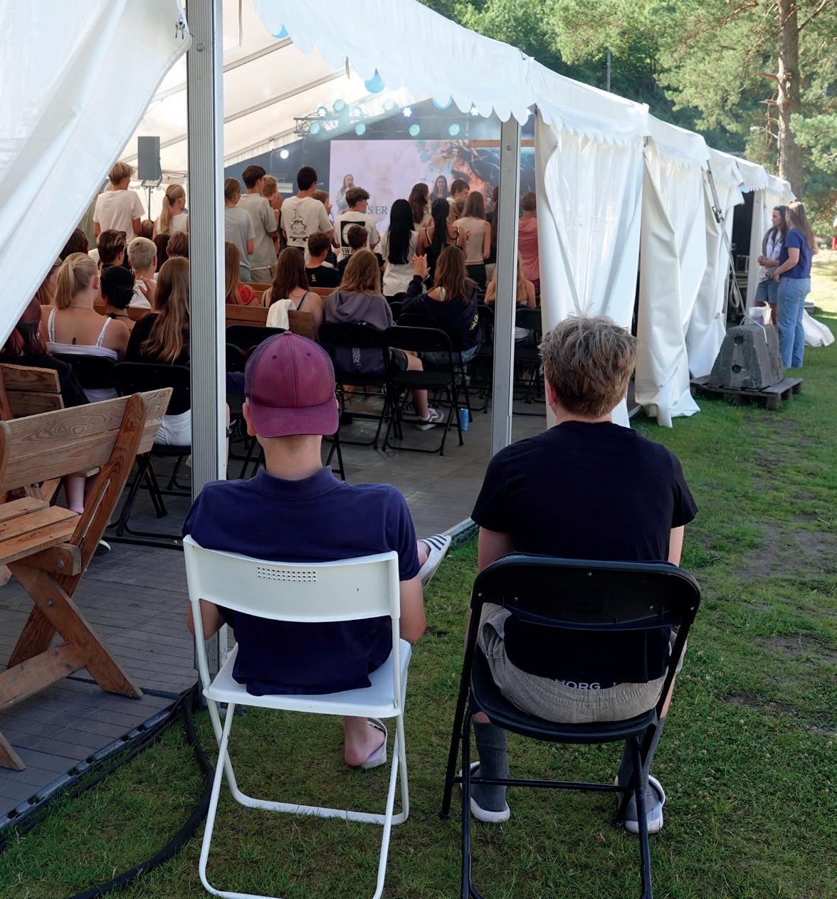Rykende kaffe og krydderkake ga god stemning i teltet og sangene traff strenger i hjertene. Kjente og kjære sanger ga lyst til å synge med. Arthur Robertsen med venner ledet musikken med gitar, piano og trekkspill til glede for de 125 frammøtte denne tredje ettermiddagen.