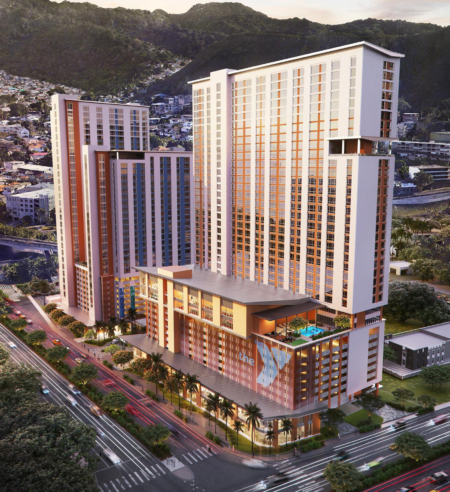 Community and healthy living converge in this high-rise concept that reflects the goals of the Nu`uanu YMCA of Honolulu, by embracing and reinforcing the values of Youth Development, Healthy Living, and Social Responsibility, and integrating the YMCA with the most complementary of all uses, affordable housing. Access to fresh air, natural light and ventilation, and sustainability are among the top priorities of the design. The concept focuses on creating a place of living, healing, learning and personal growth, exemplary of the Hawaiian tradition.